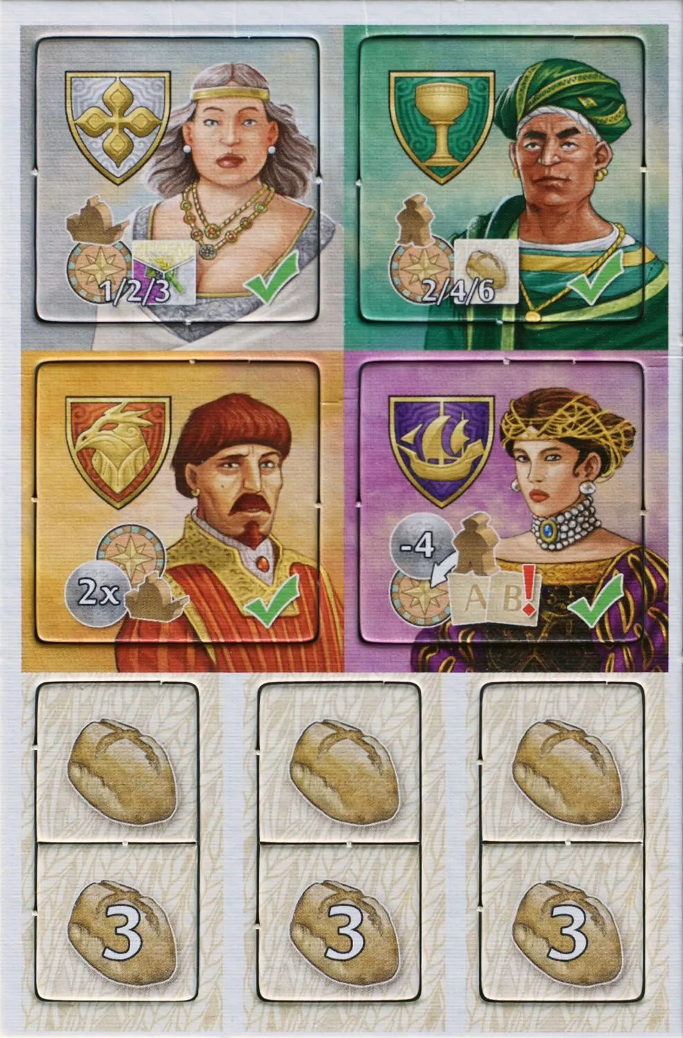 The Crown of Portugal has a series of requests regarding expeditions, urbanization, opening trade routes, increasing wealth, and controlling the guilds on the islands. Three times during the game, the players gain prestige for fulfilling certain requests by the Crown. At two other times, the Crown requests that the islands change the focus of their agriculture due to the changes in the world.