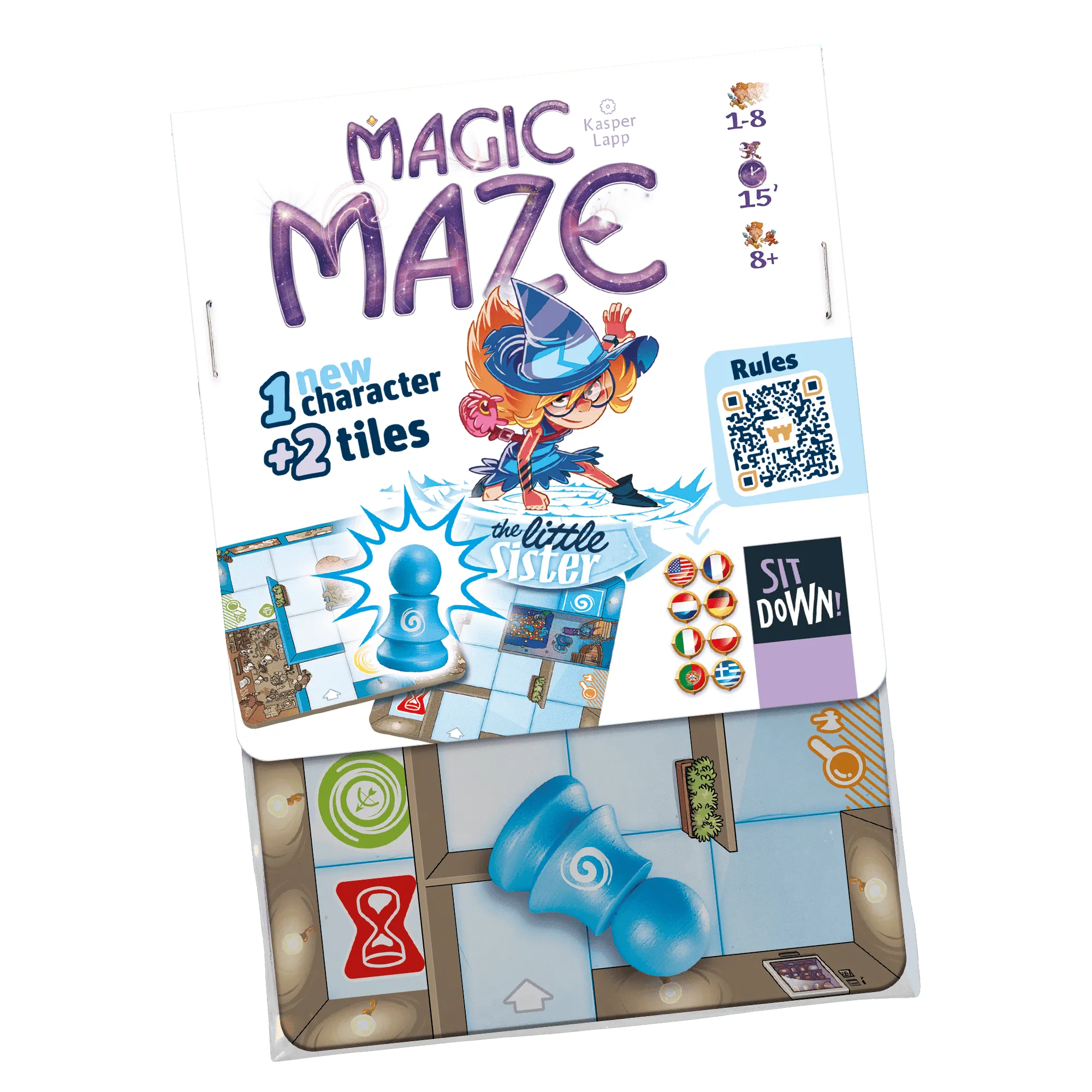 Magic Maze est un jeu coopératif dans lequel une magicienne, un barbare, un elfe et un nain se lancent dans une mission originale : voler le centre commercial Magic Maze pour récupérer leurs bien dérobés. Les joueurs ont 3 minutes pour réussir l'un des 17 scénarios de la boîte. Le tout en silence !