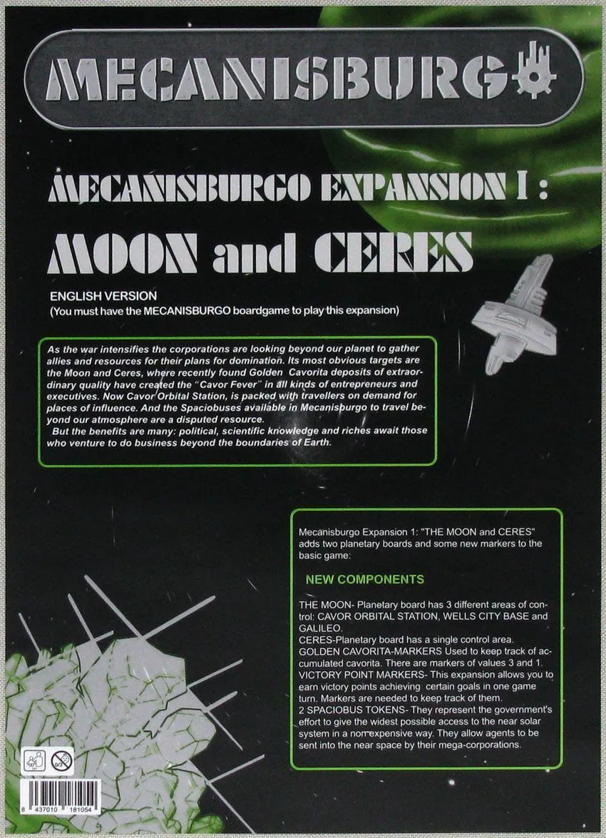 Mecanisburgo is a 2-6 player science-fiction themed game that lasts 120-150 min. It’s set in an alternate present in which all the predictions of classic sci-fi (Asimov, Conan Doyle, Clarke, etc) have turned true. Mecanisburgo is the megalopolis capital of the world, where the struggles of the biggest corporations take place. Players control these different corporations, each with different special abilities.