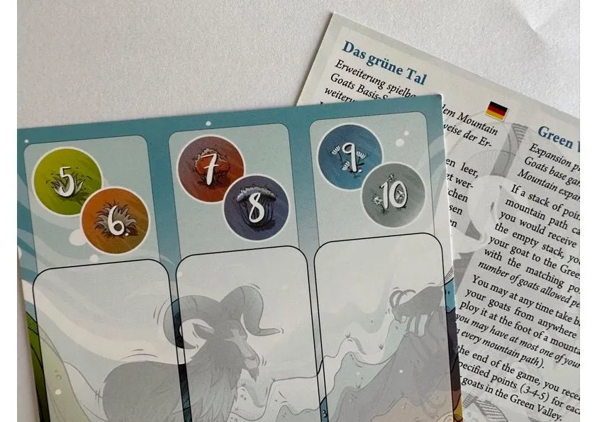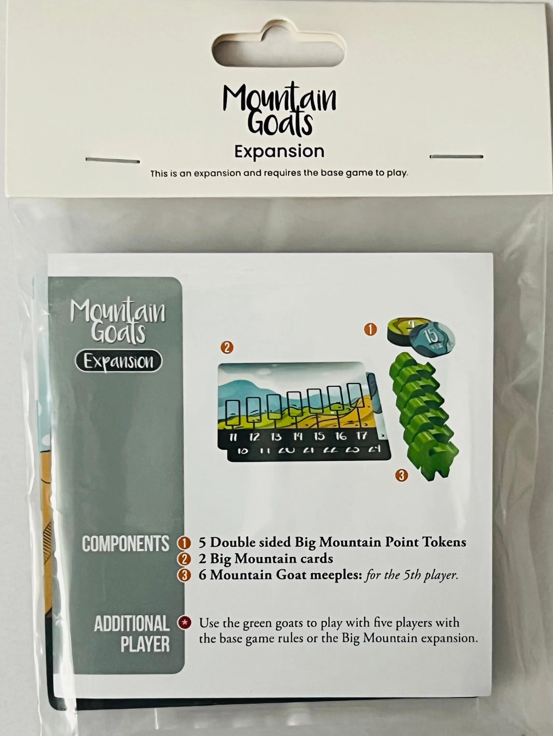 Dans ce jeu, faites monter vos chèvres sur 6 chemins différents. Vous pouvez partager des espaces avec d’autres chèvres sur le chemin, mais il n’y a de place que pour une seule chèvre au sommet de chaque montagne. A chaque fois que vous y arrivez, ou que vous refaites le bon lancer de dés, vous gagnez un jeton de points. Si la chèvre de quelqu’un d’autre arrive au sommet de la montagne alors que vous vous y trouvez, elle vous éjectera et vous devrez recommencer votre randonnée. Mountain Goats est un jeu de timing. Vous devez non seulement arriver au sommet de la montagne, mais aussi y arriver quand personne d’autre n’est en position de vous faire tomber.div> Il s’agit de garder un oeil sur vos adversaires, maximiser votre score, mais aussi s’assurer que vous ne laissez pas quelqu’un d’autre marquer trop de points.