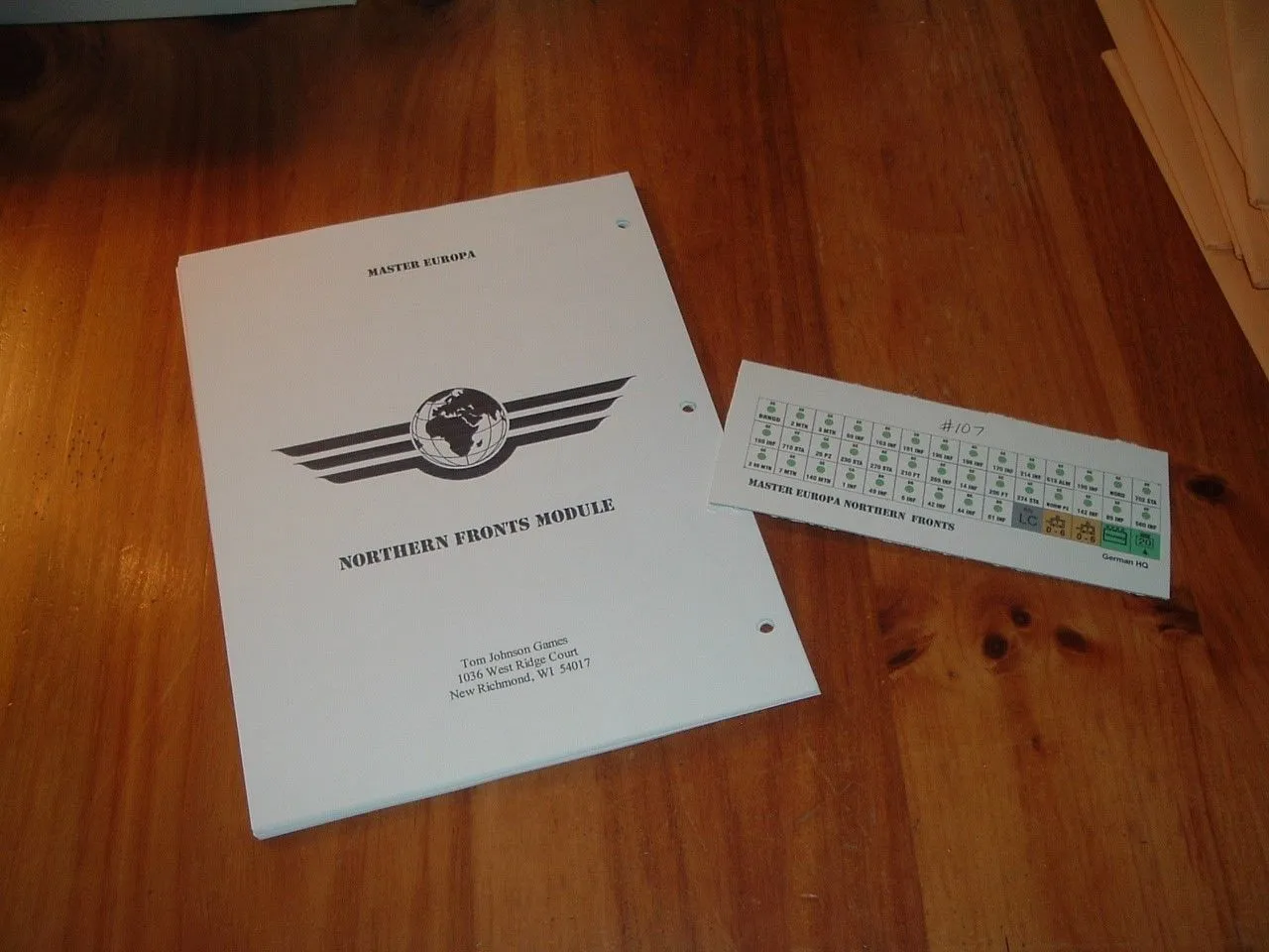 two full map sheets (Europa #10A and 5B, in white-black-blue-green-brown colour) three sheets of die cut counters (Europa #11A, 12A & 13A; for 720 counters) one rules booklet (bound, without 3-hole punching, with black front cover) one Norwegian and one Swedish “Europa-scale” double sided OOB/mobilisation supplement sheets one set of charts: Norwegian Armed Forces Chart Norwegian Initial Order of Battle Allied Reinforcement Chart Allied Unit Composition Chart German Initial Order of Battle German Reinforcement Chart German Unit Composition Chart CRT/Terrain Effects Chart (x2) Turn Record Chart