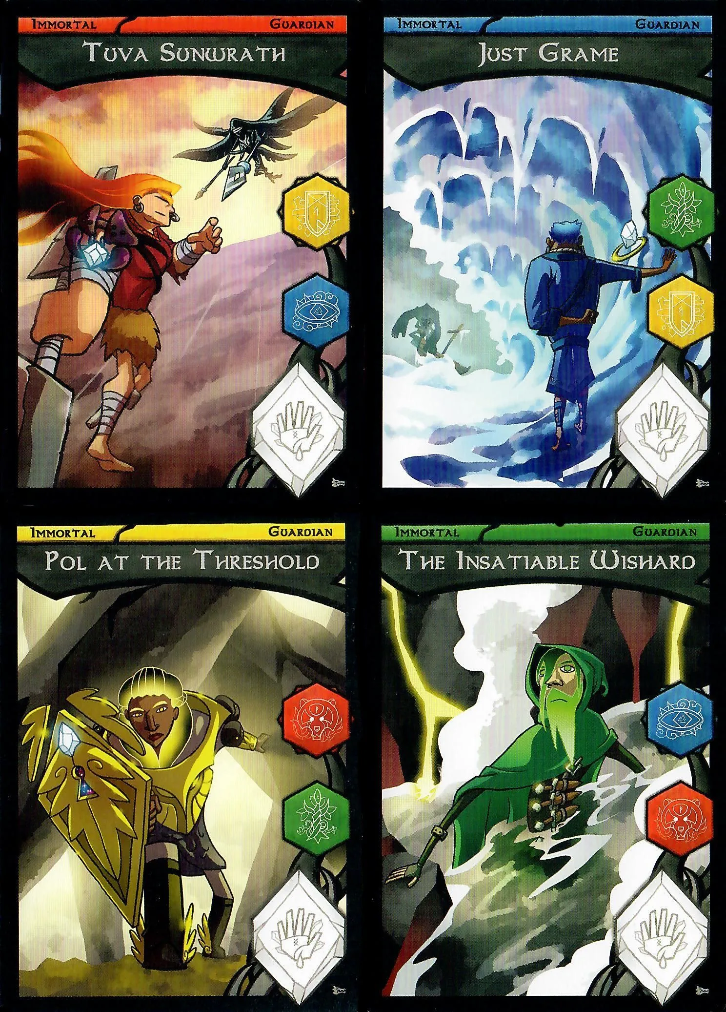 The player’s family tree also allows them to use embellishments matching the color of their youngest hero. If second or third generation heroes of the same color are present, more powerful embellishments may be used.
