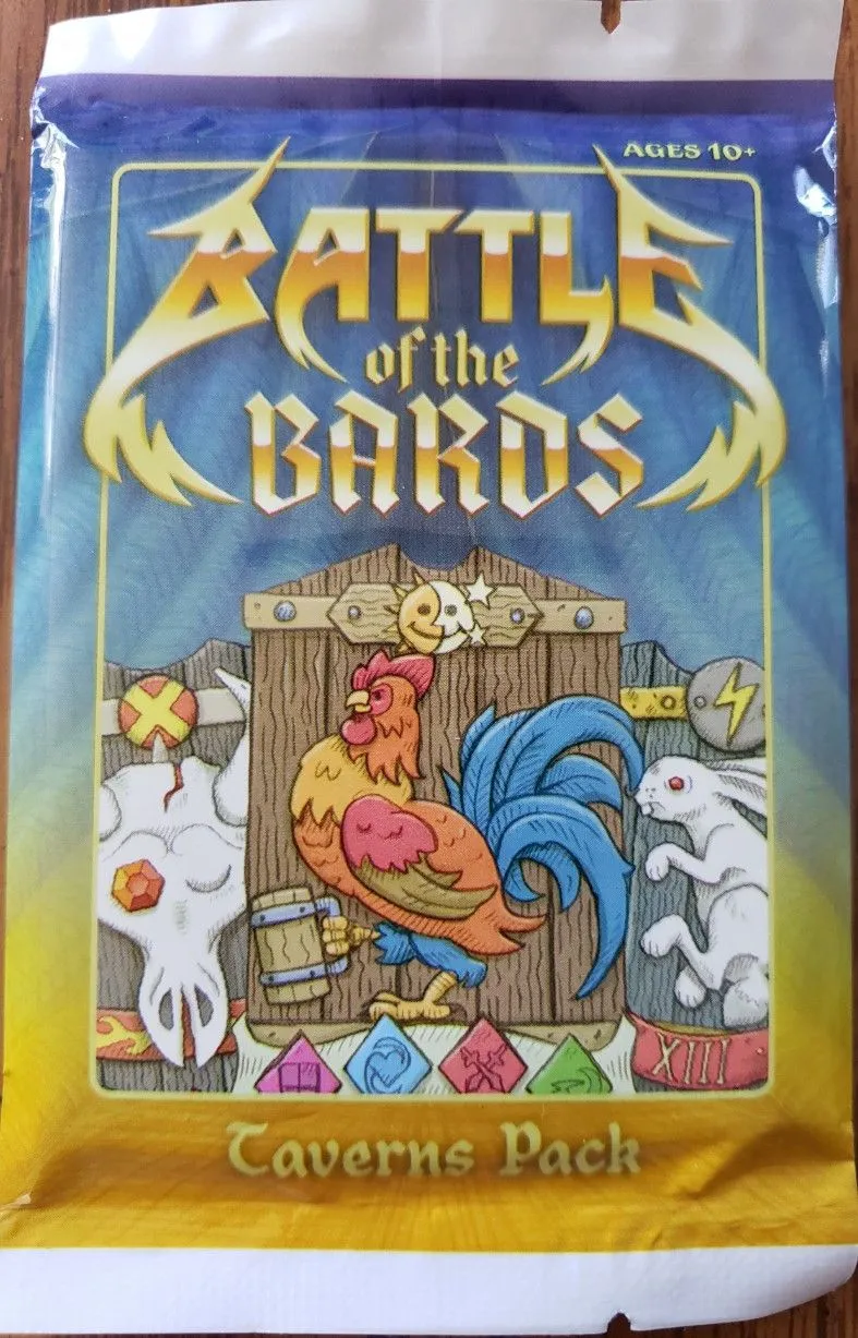 Battle of the Bards is a dice-rolling card game with aspects of deck-building set in the fantasy world of Tessandor. Players create performances, recruit bards, and work with their roadies to capture audiences in a race to become the best bard troupe.
