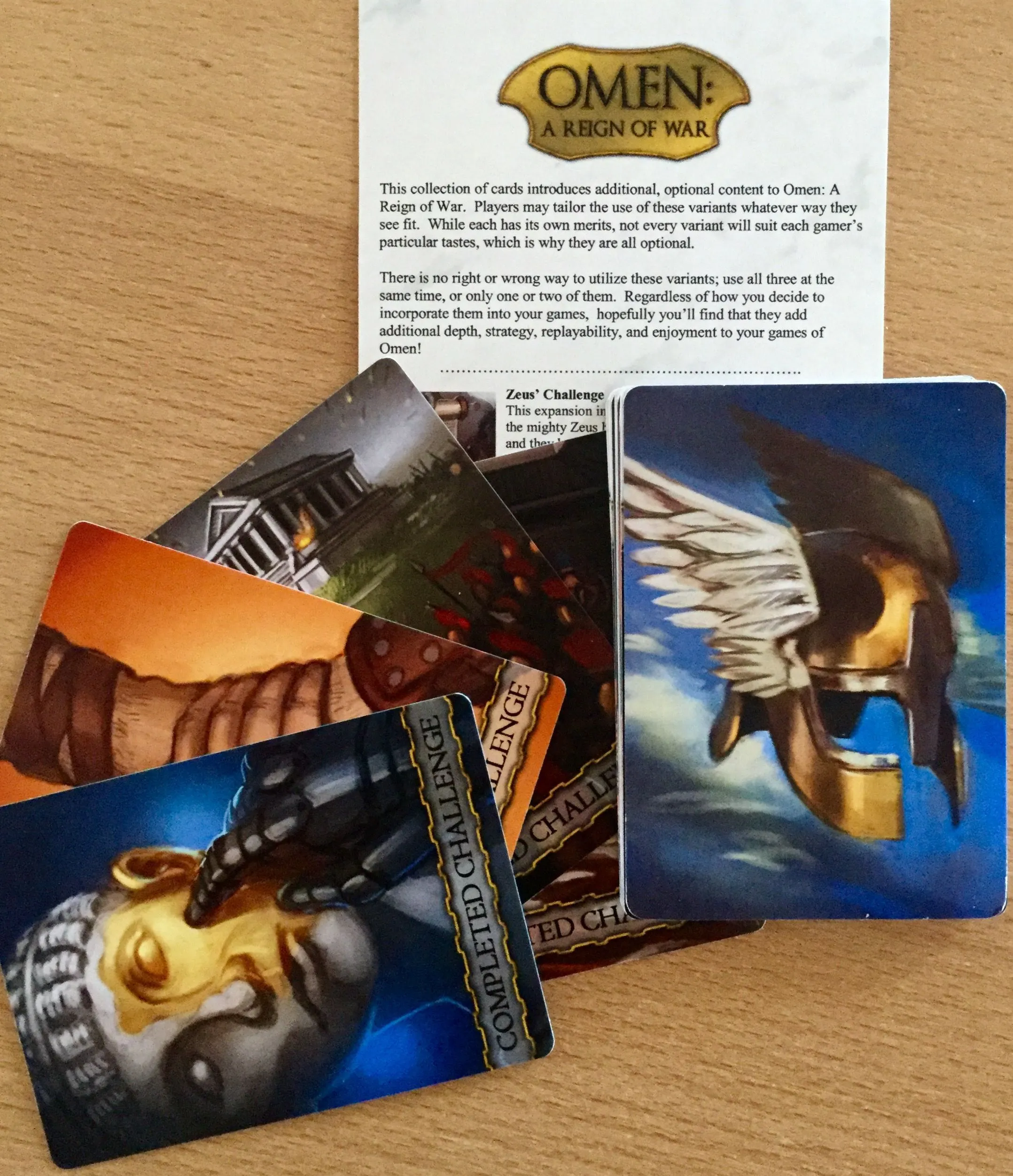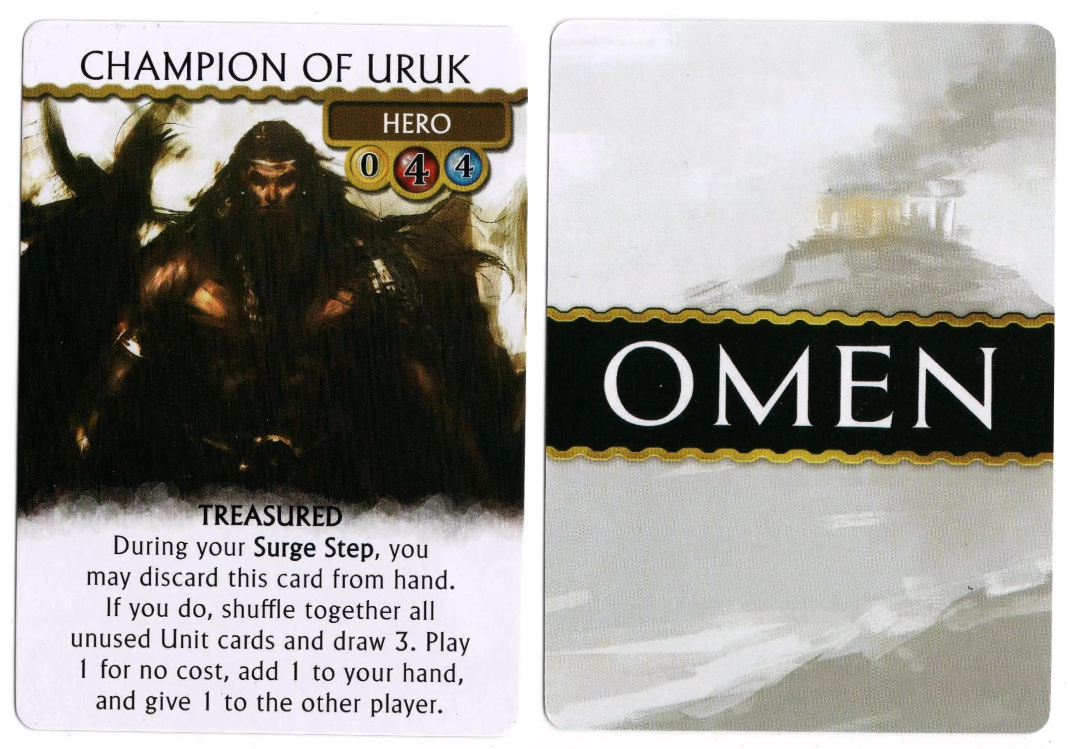 Omen: Reign of War is a head-to-head strategic card game where you compete to gain the favor of the pantheon of gods, and prove that you are the rightful heir of Zeus. Powerful forces of antiquity and legend are at your command as you raze and pillage cities, strategically manage your resources, and eliminate your rival’s forces. Choose your battle strategy with rules for standard and draft play, and expand your war with other, fully compatible, games from the ‘Omen Saga’!