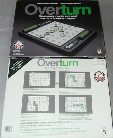 Overturn sports a modular board that changes with every game. It’s kind of like a “find the hidden word” puzzles you used to play in the newspaper. Each player places colored rings over letters to make words. If you use the rings already placed by your opponent, you may turn the rings over to your color. Winner is the one with the most rings after all the letters have been used, or no more words can be made.
