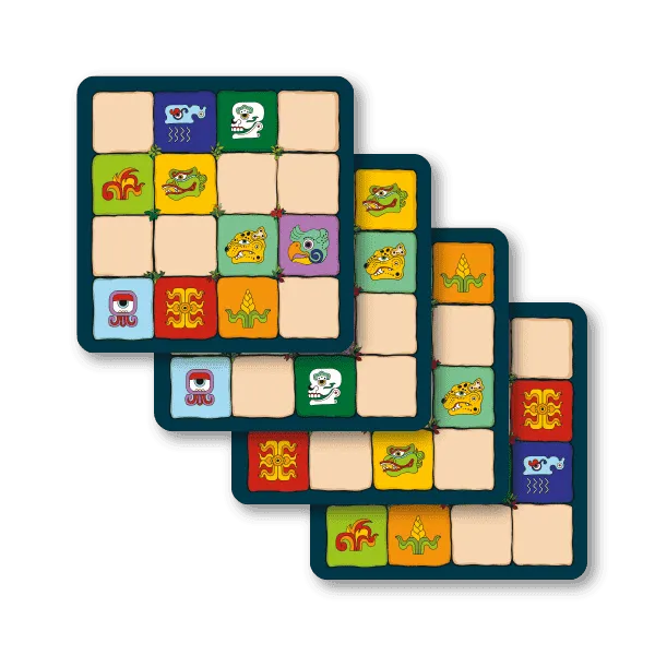 Pakal is a real-time sliding-puzzle game in which each player has a 4x4 grid filled with 15 blocks, some of which have a solid color on them and some of which are clear.