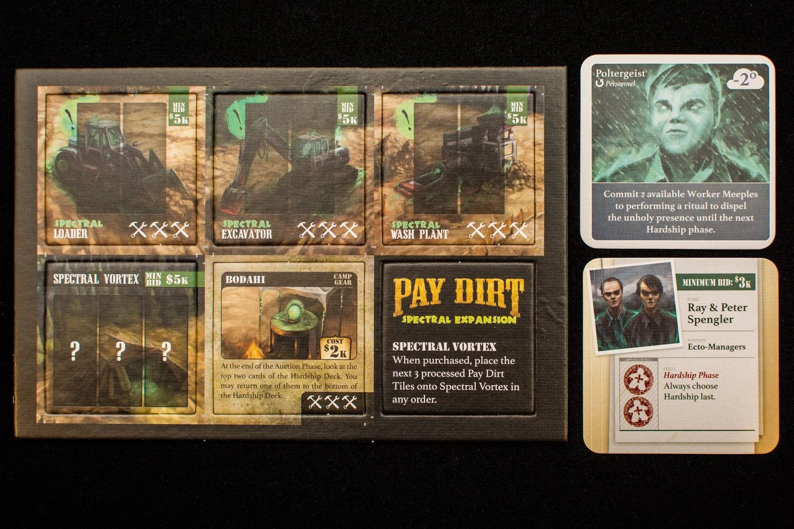 Pay Dirt is an engine-building, worker placement game set in frigid Alaska for 2-5 players. Players are competing to manage and grow their entire mining outfit while acquiring the most gold before the ground is too frozen to dig. The Alaskan countryside is an inhospitable environment, so players will face hardships that affect their entire outfit – not to mention the ever-dropping temperature that will shut down their operation.