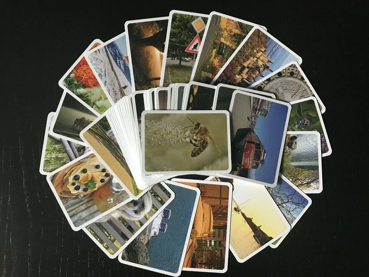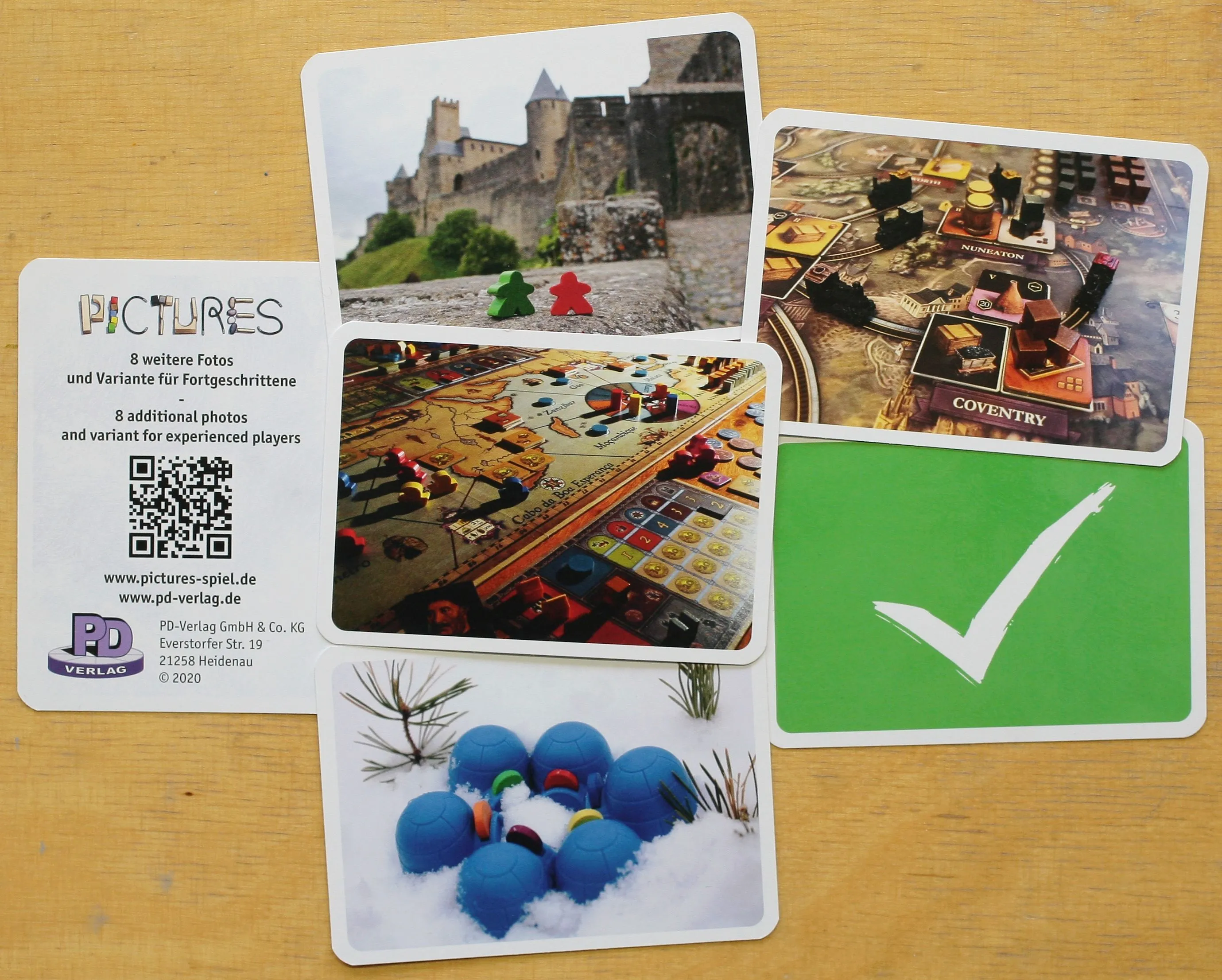 Dans Pictures, chaque joueur essaie simultanément de copier une image avec l'un des cinq matériaux différents : blocs de construction, bâtons et pierres, cartes icônes, cubes de couleur ou corde.