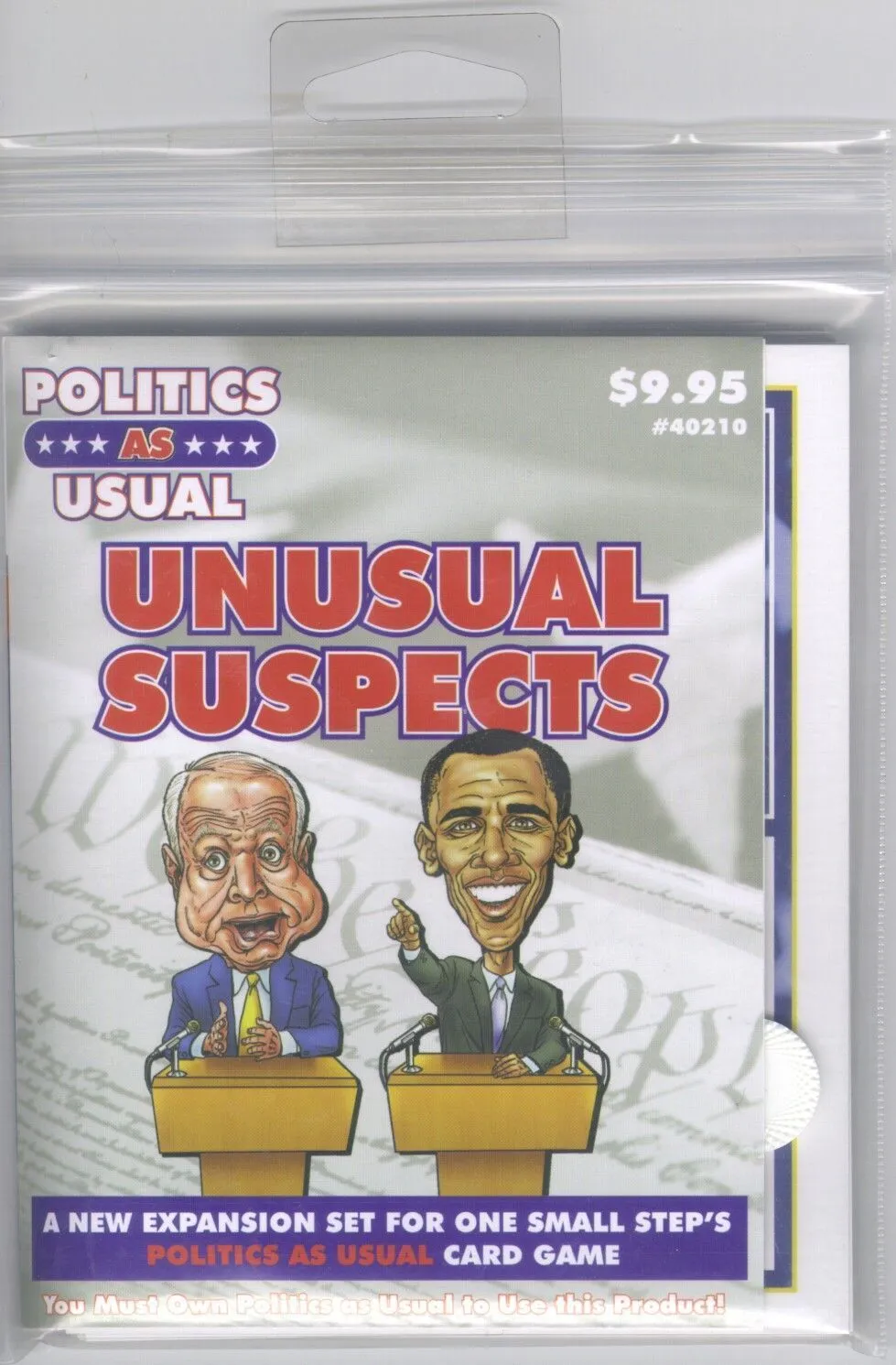 Politics As Usual is a fast paced card game with mass market appeal that makes each player a candidate campaigning to be President of the United States. Players battle to control Votes, launch Slander attacks, and play cards to gain an Edge. Gather enough Votes and you get to be President!