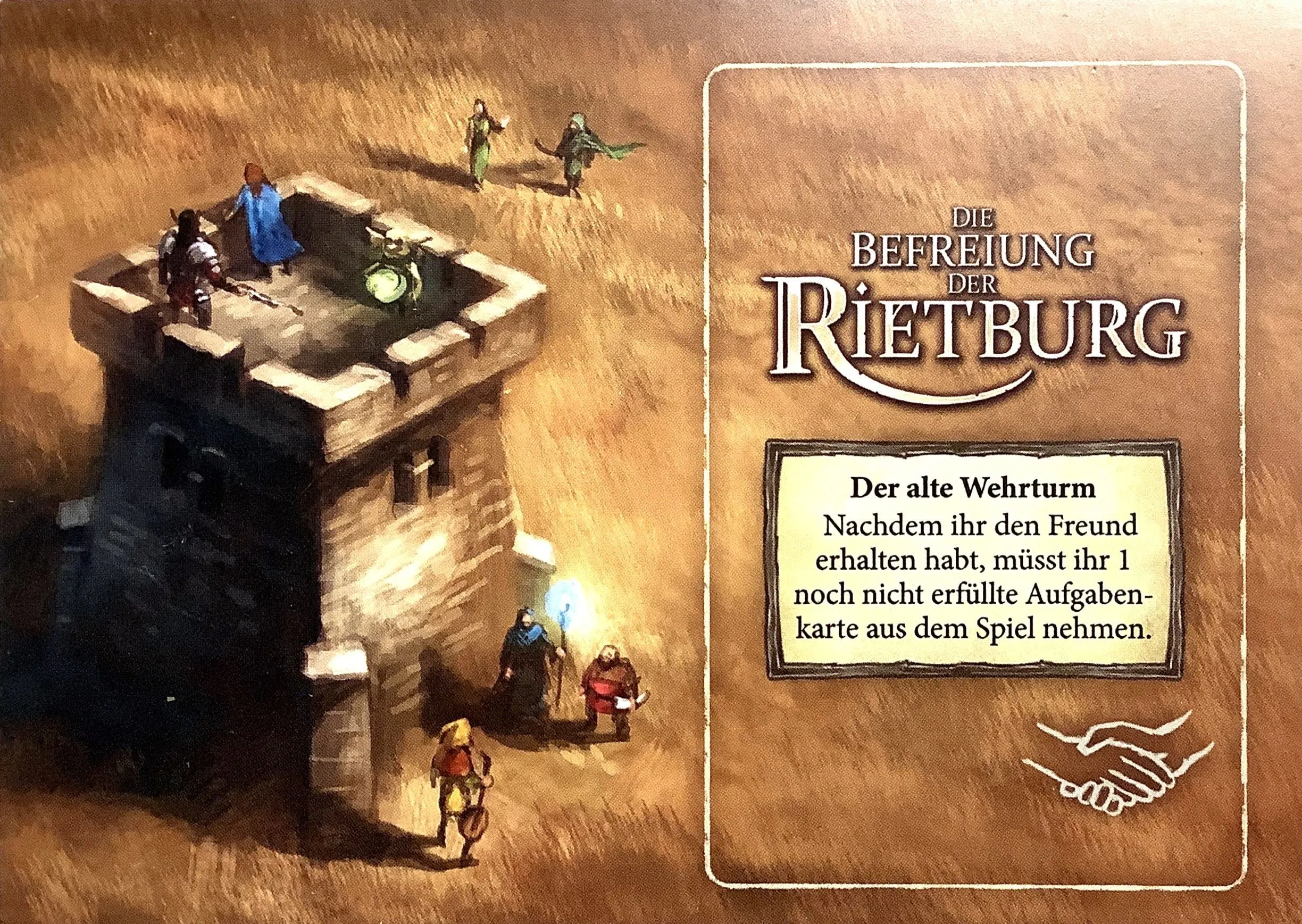Gors, Skral, and other creatures have invaded and now occupy King Brandur’s fortress, known as Rietburg. Only by working together can the heroes of Andor complete four of six tasks to free the Rietburg. What tasks await the players will be revealed only during the course of the game…