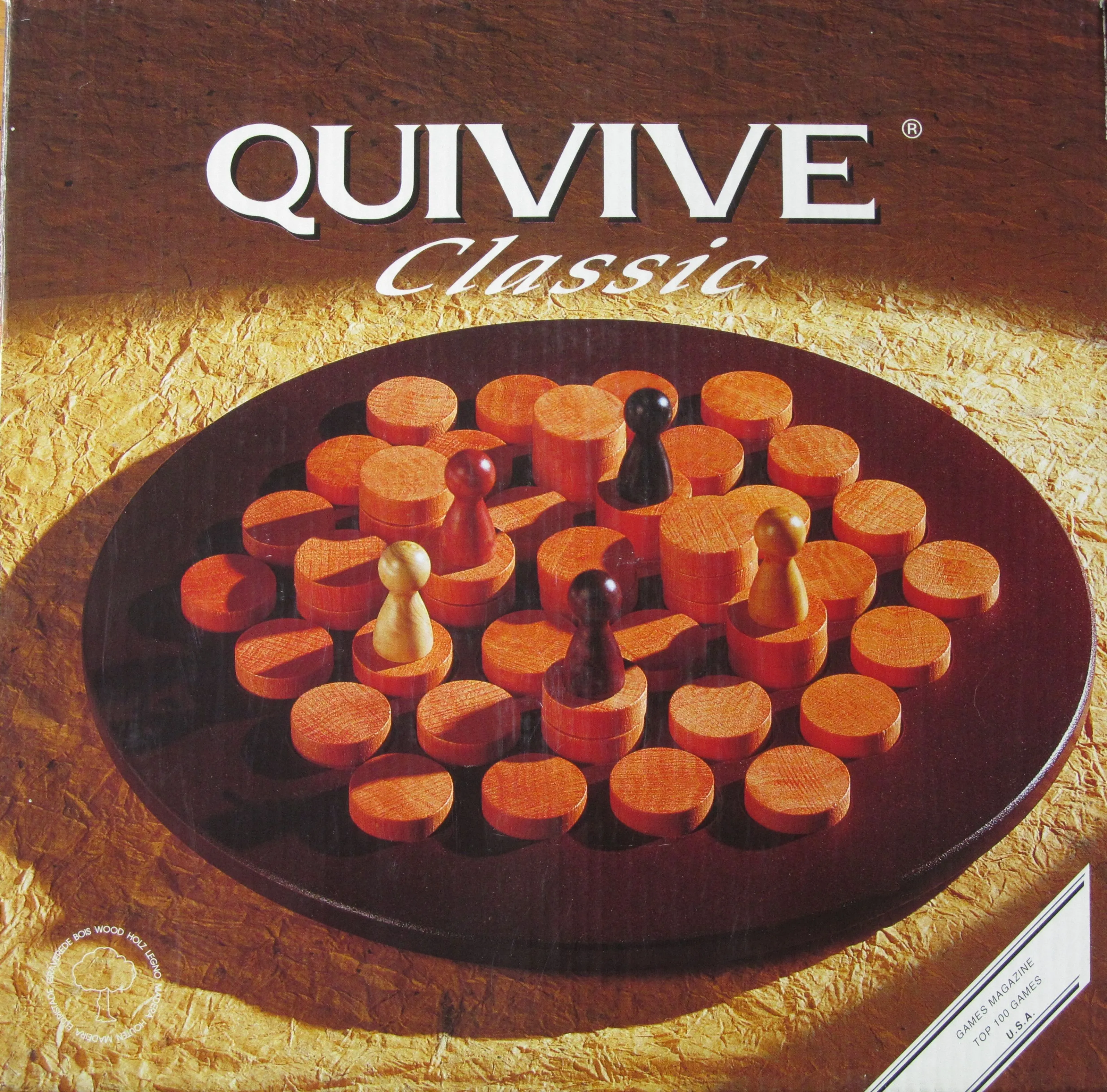 Quivive is a game of avoiding running out of moves. The board is made of 49 disks – some are stacked to double and triple height. On your turn, you must move your pawn to an adjacent, unoccupied disk in any direction – horizontally, vertically or diagonally – and remove any unoccupied disk of your choice. You lose if you no longer have a legal place to move your pawn. The last player left wins.