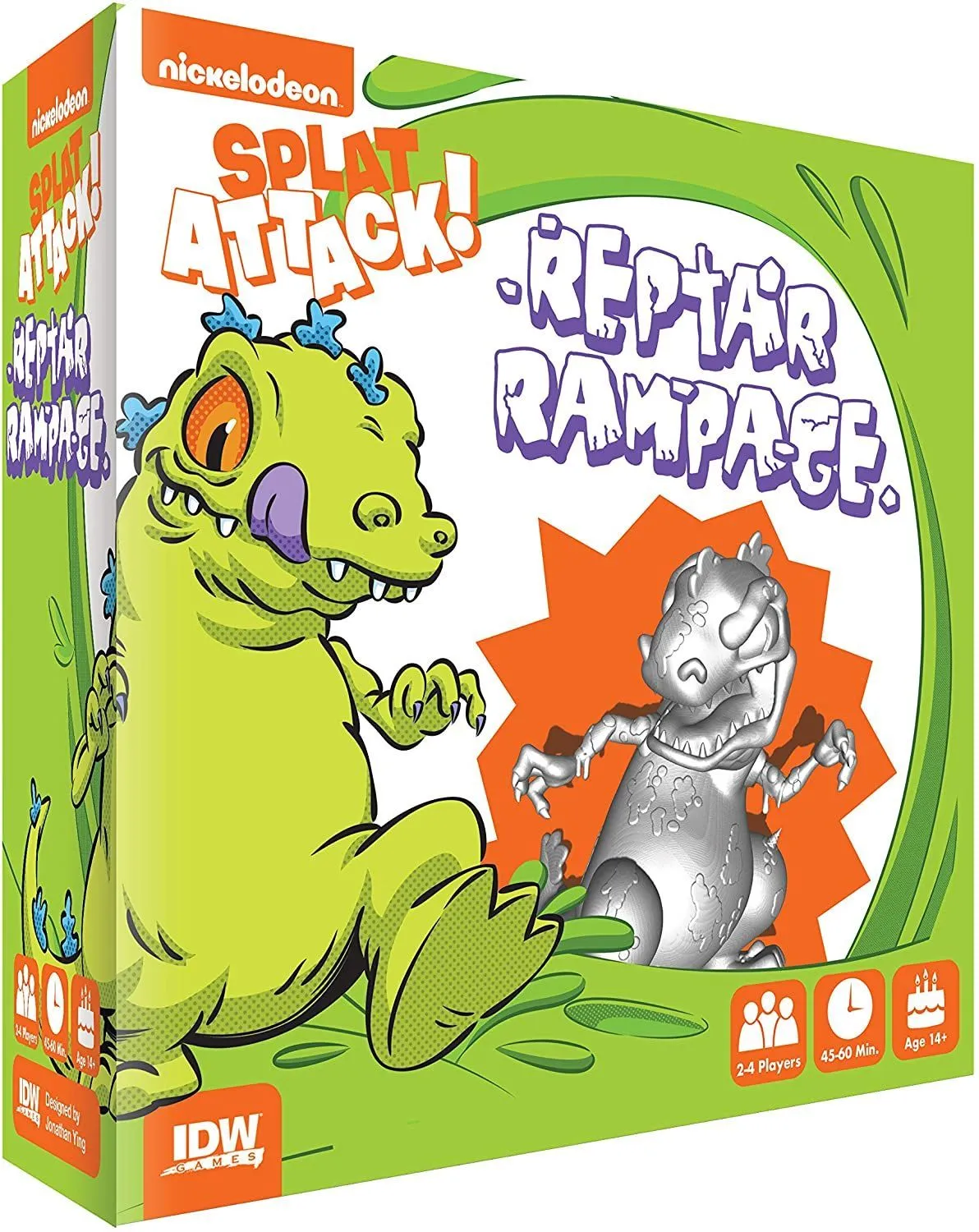 Nickelodeon’s Splat Attack! is a 2-4 player game which puts players in control of teams from different brands as they fling food, fight for control of areas, use special abilities to come out the cleanest and avoid getting knocked out! The base game includes 16 highly detailed miniatures of your favorite characters and a whole plate filled with game components and card board elements. Designed by Jonathan Ying (Doom and Imperial Assault) this game is made for miniature games fans and new gamers. SpongeBob and Patrick taking on Tommy and Angelica for control of the food court is what this game is all about!