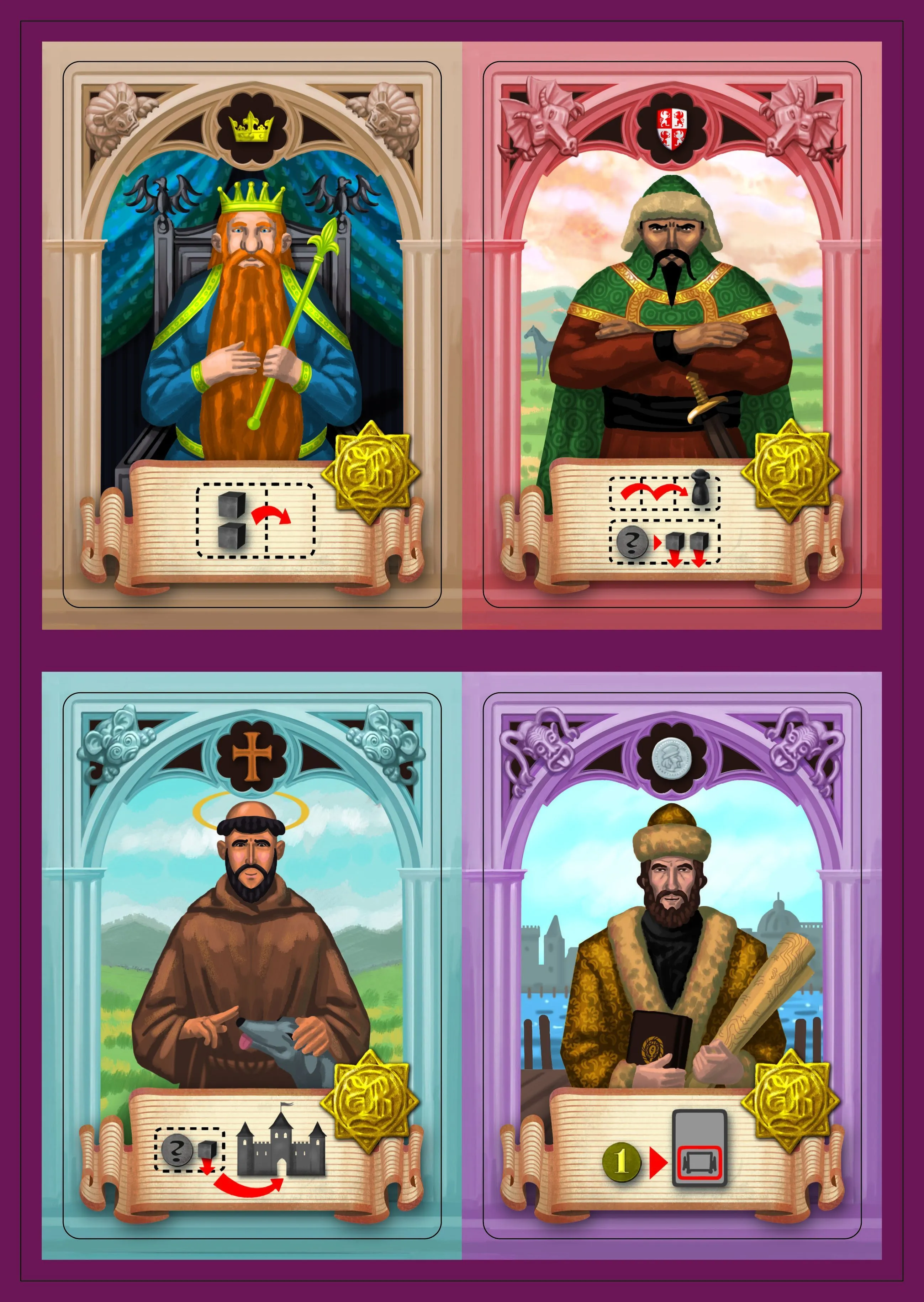 Europe, 1347. A disaster is about to strike. The Black Death reaches Europe, and during the next 4-5 years, the population of Europe will be halved. The players settle in the various regions of Europe, while the plague spreads throughout all of the continent. The players gain help from the various classes of the middle ages: the Peasants provide population growth, the wise Monks keep the rats away, the rich Merchants flee when the plague approaches, the warfare conducted by the Knights spreads the plague to new areas, the Witches control the spread through magic and witchcraft, whereas the Kings avoid the plague by staying in their fortified palaces. But the plague does not make any distinction: when the rats arrive, no one can feel safe. When the plague withdraws and the game ends, the player with the highest surviving population wins.