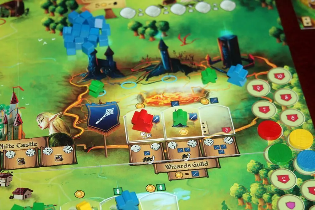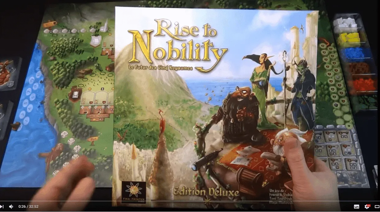 Rise to Nobility est un jeu de placement d’ouvriers (avec dés) qui se déroule dans le même univers fantastique que Cavern Tavern. Chacun des joueurs possède un petit lopin de terre dans la toute nouvelle cité, et votre objectif est de passer de l’anonymat au titre de seigneur, pour finalement prendre la place principale au Conseil de Pierre.
