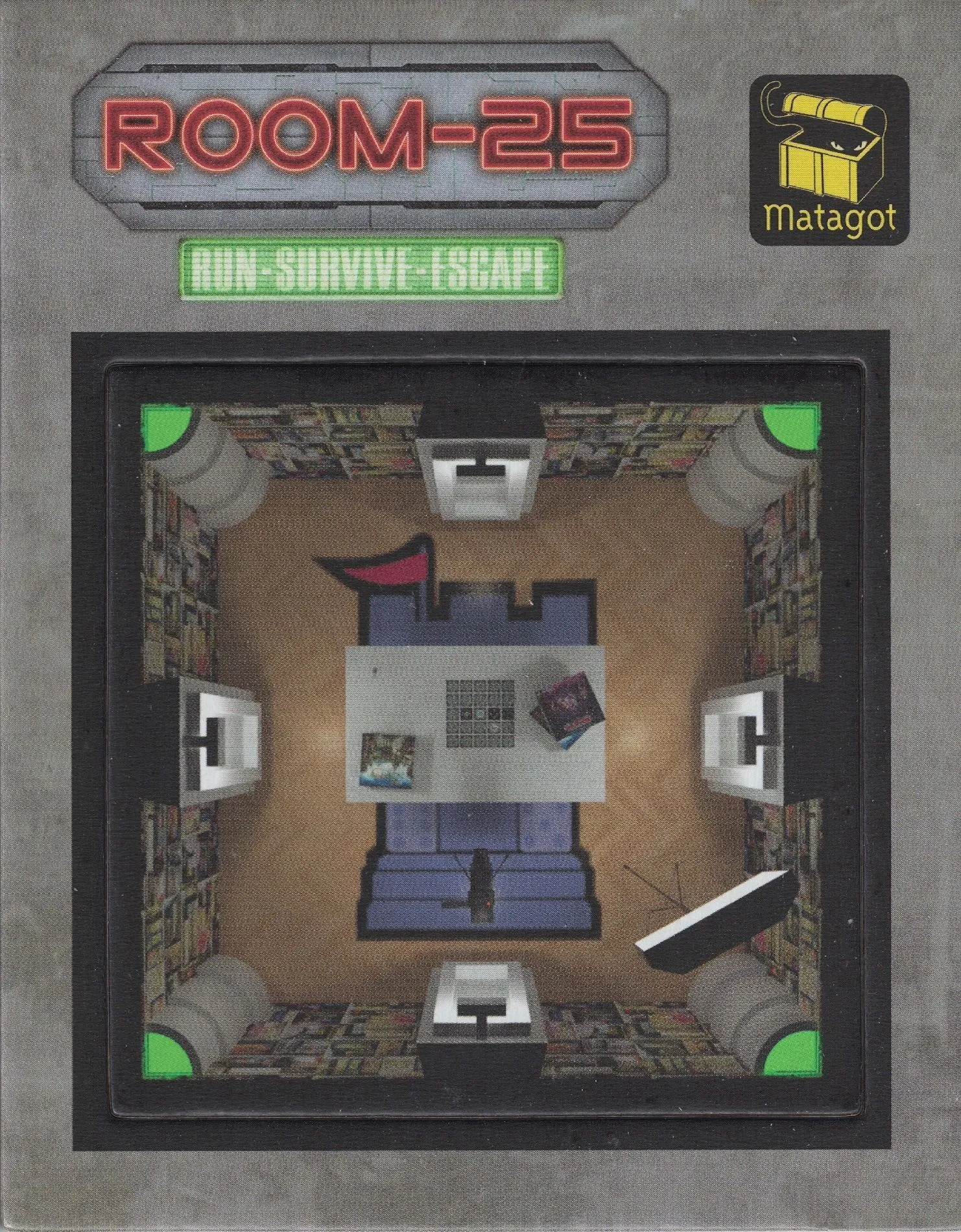 Trapped in a prison in which each room has four doors but apparently no exit, the players must try to find Room 25, the supposed exit to this nightmare. But some amongst them might be guardians of the prison, waiting for the right moment to strike. In the cooperative game Room 25, not everyone wants to escape from imprisonment – but who is the traitor? Each turn, the player moves are preprogrammed, requiring discussion, negotiation – and possibly betrayal.