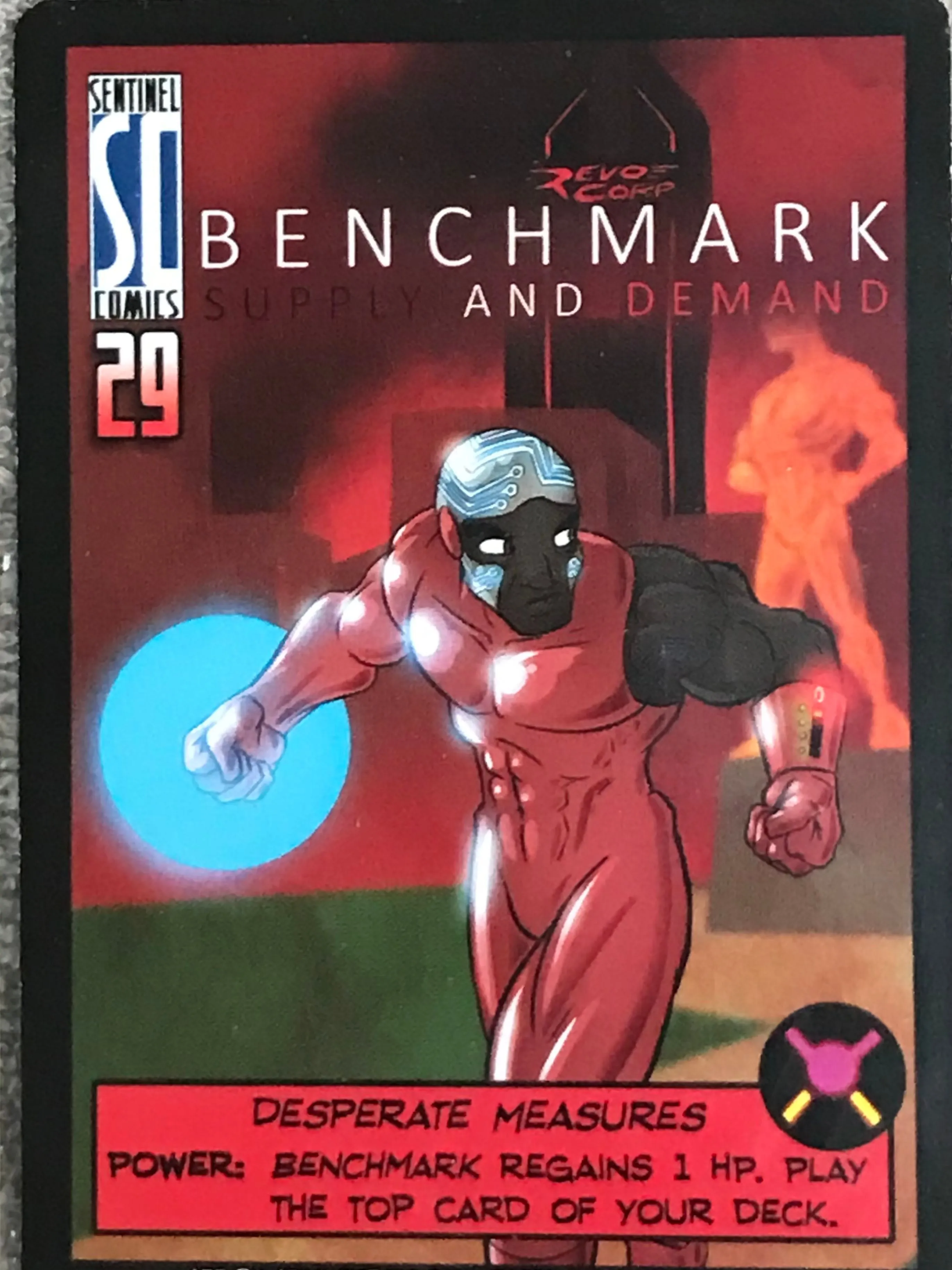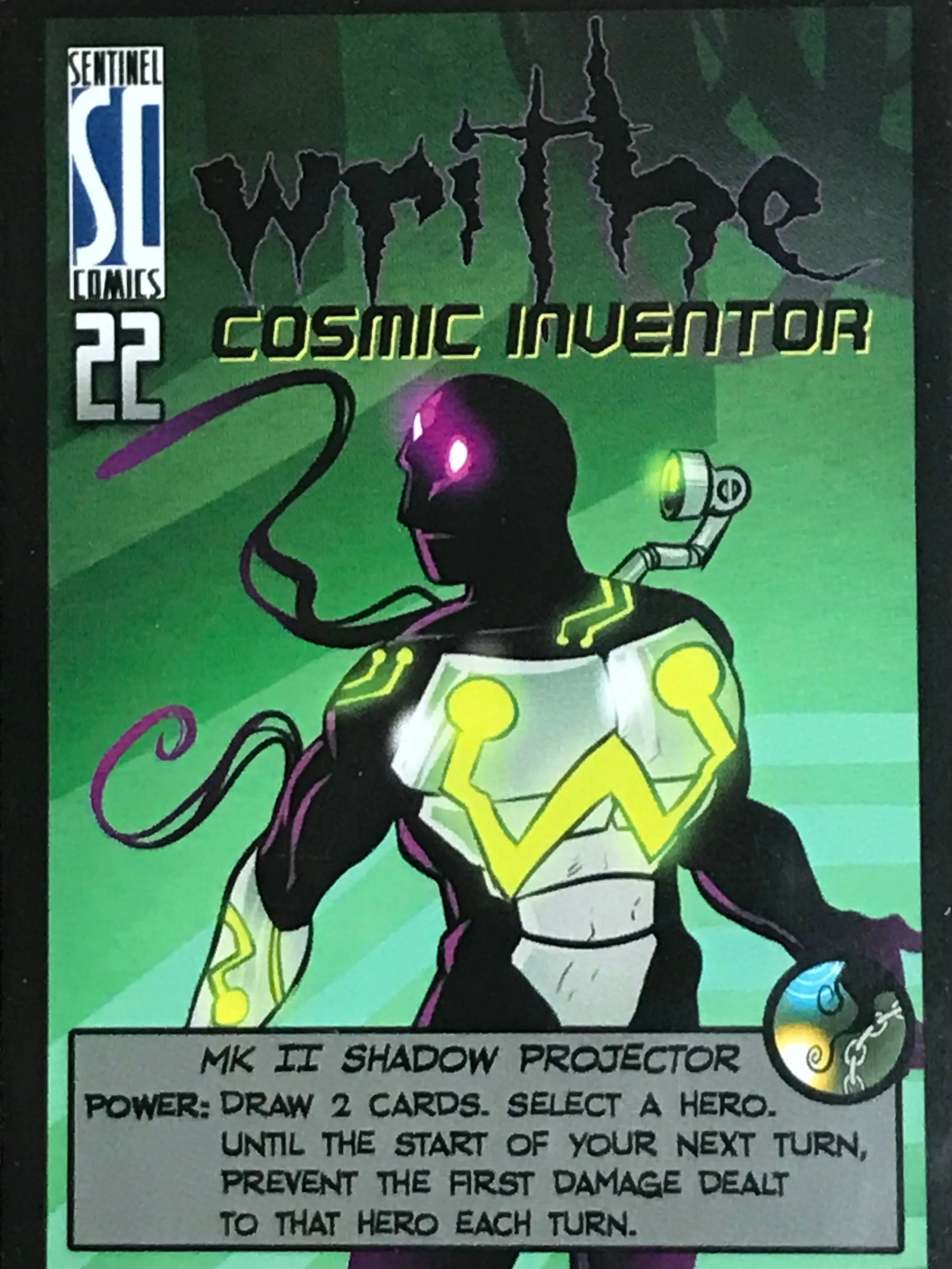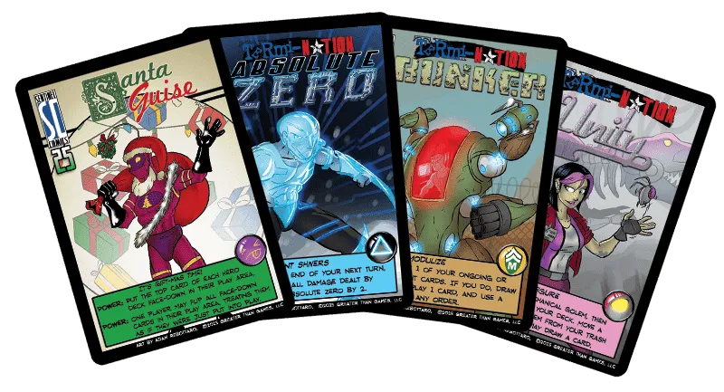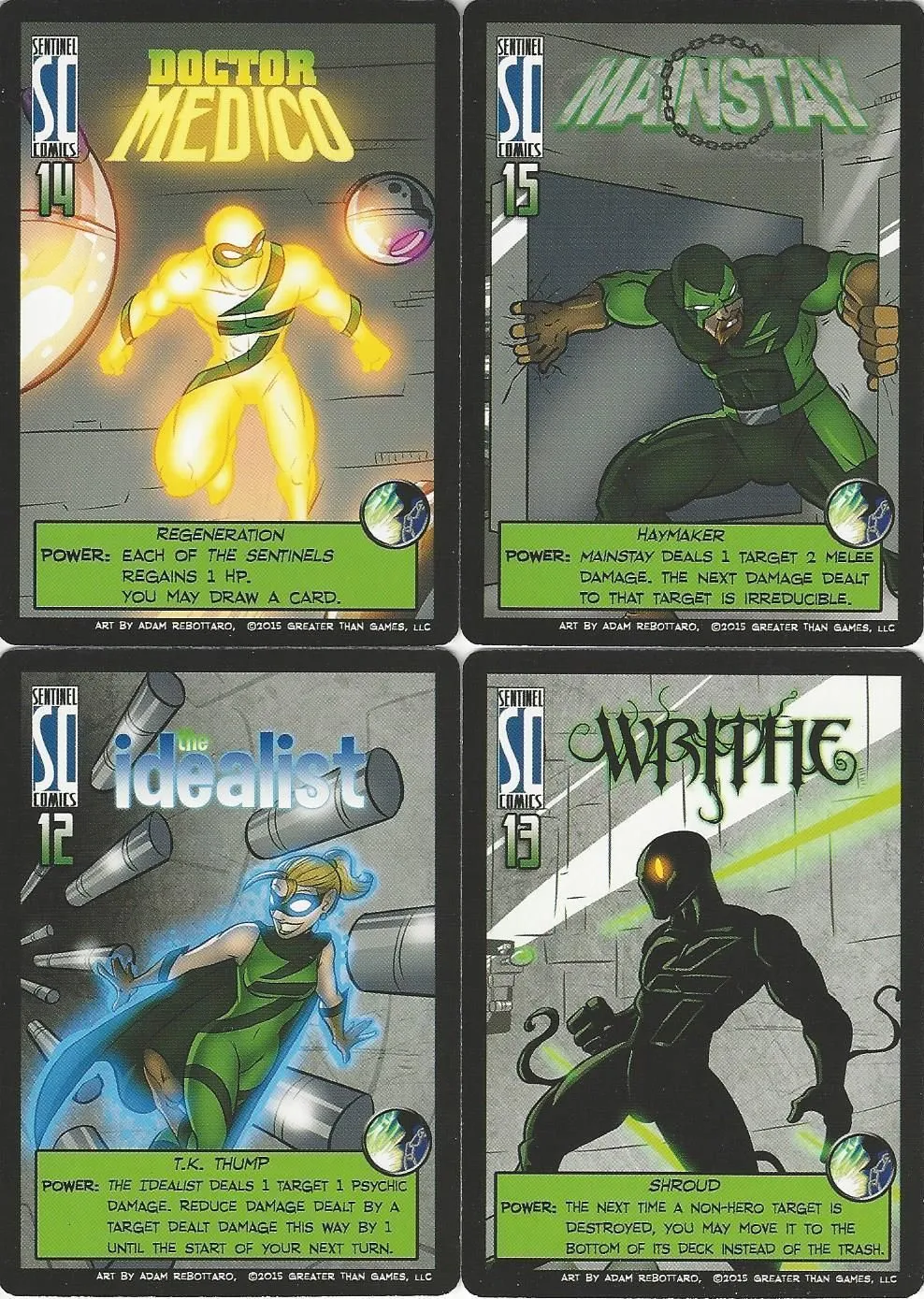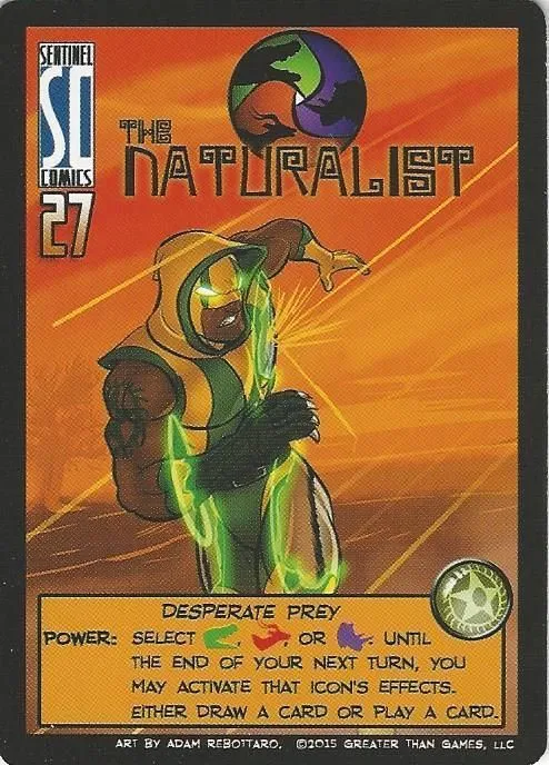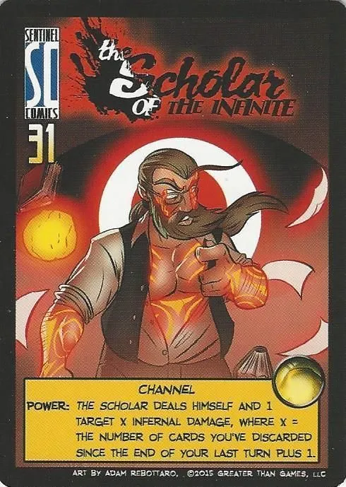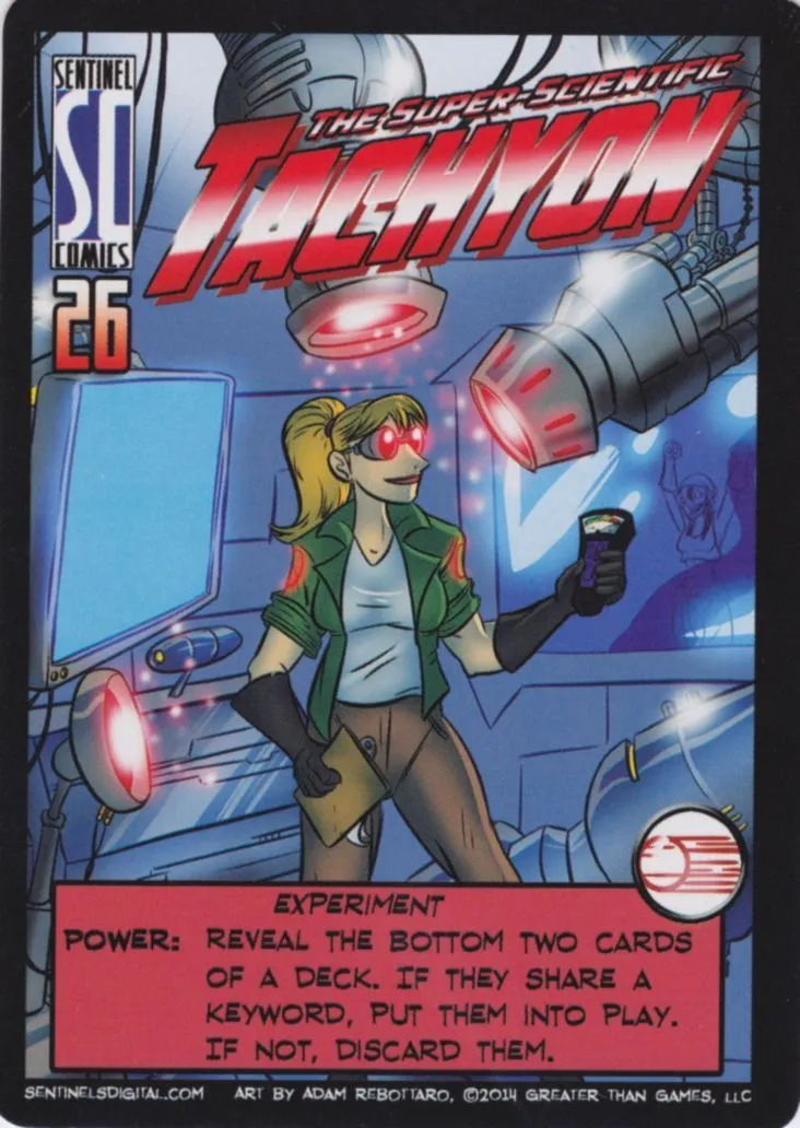Sentinels of the Multiverse is a cooperative, fixed-deck card game with a comic book flavor. Each player plays as one of ten heroes, against one of four villains, and the battle takes place in one of four different dynamic environments.