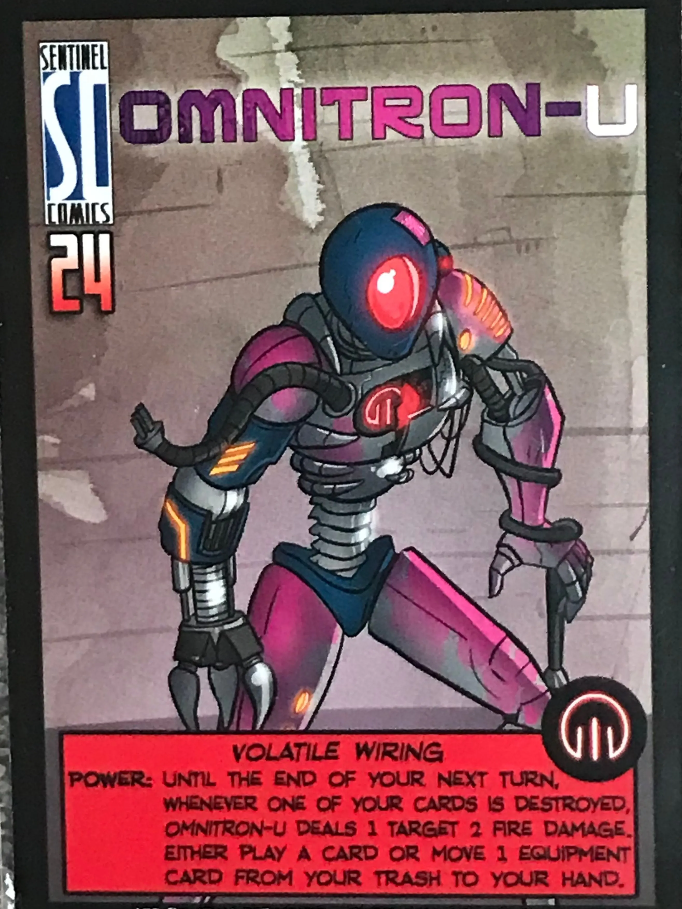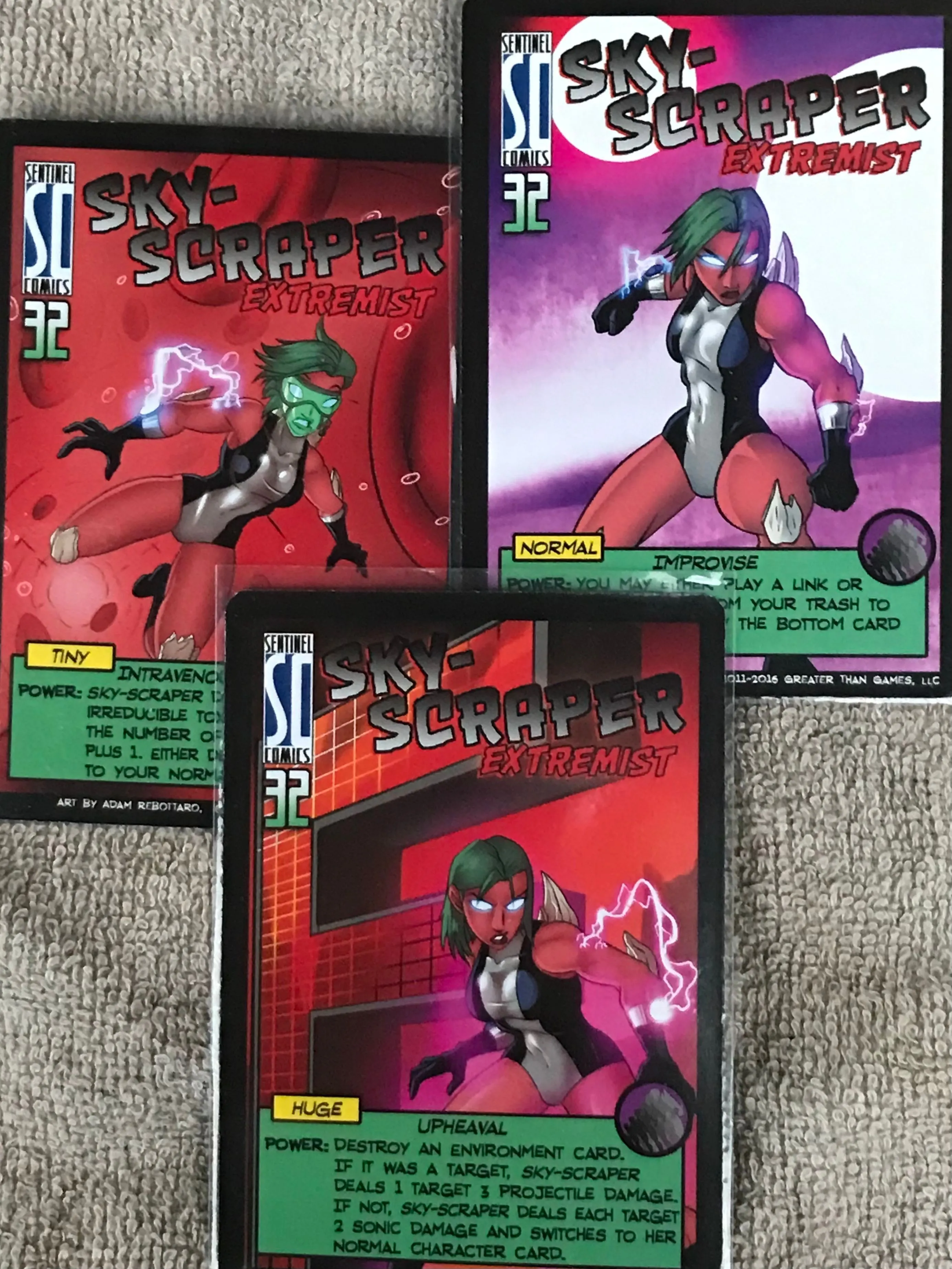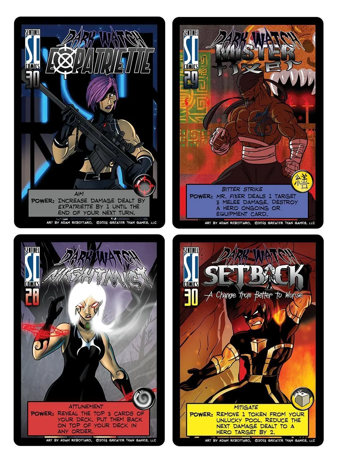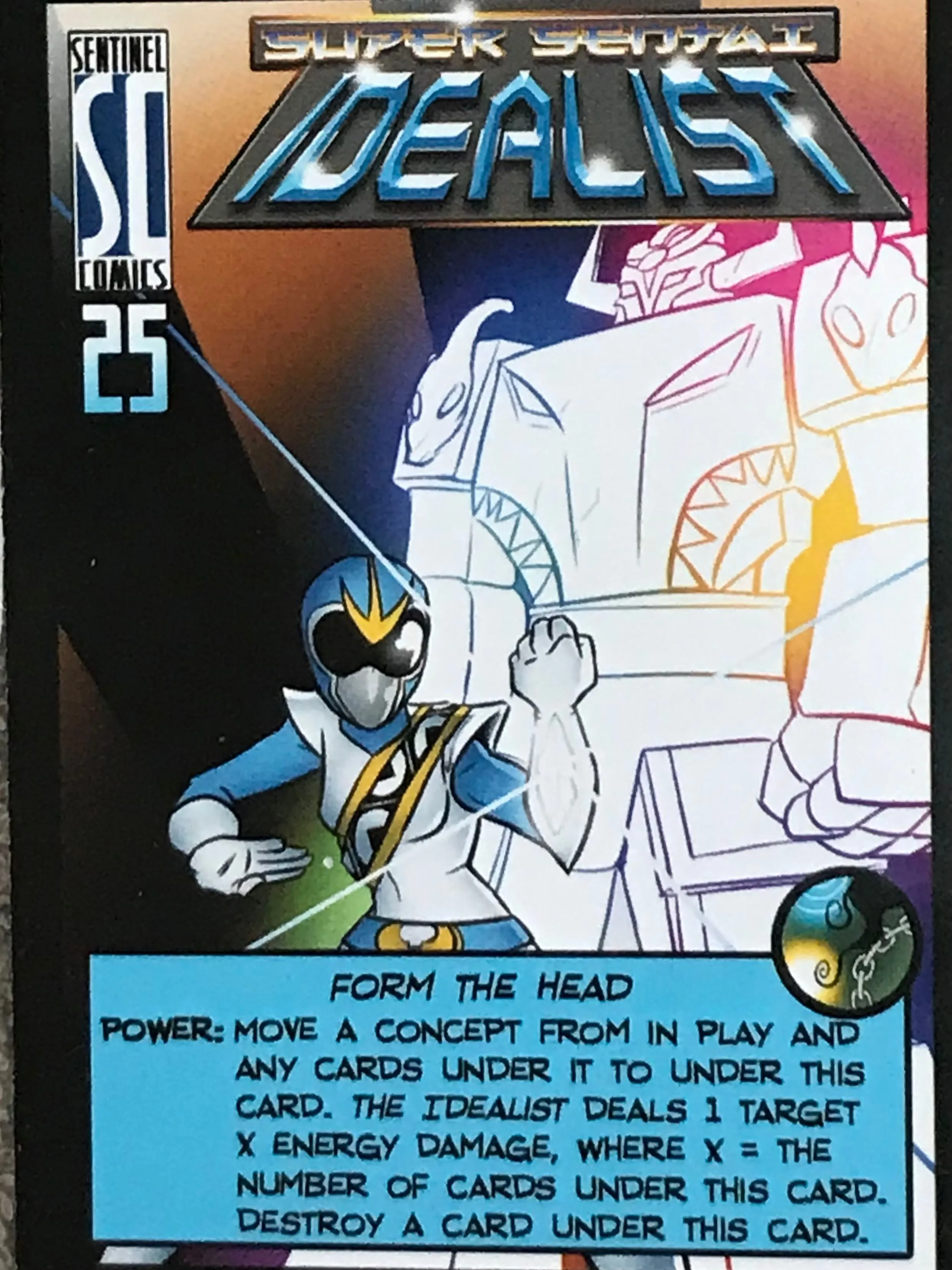 Sentinels of the Multiverse is a cooperative, fixed-deck card game with a comic book flavor. Each player plays as one of ten heroes, against one of four villains, and the battle takes place in one of four different dynamic environments.