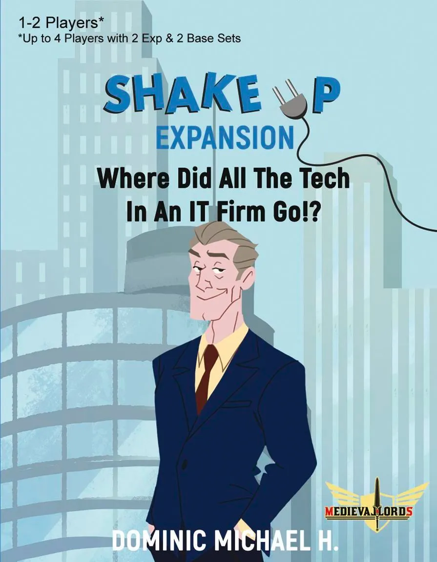 Shake Up sits in a very rare tabletop genre: reverse deck-building or also known as a deck destruction game. Players each have their own deck of cards, which are completely identical decks since they represent the same employees of the same IT company. How each player handles the company will be different though, and that is where the better consultant will stand out. The first consultant to put the company into the green wins!