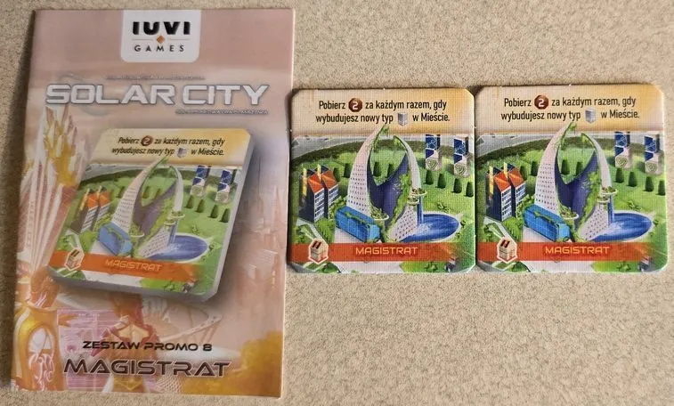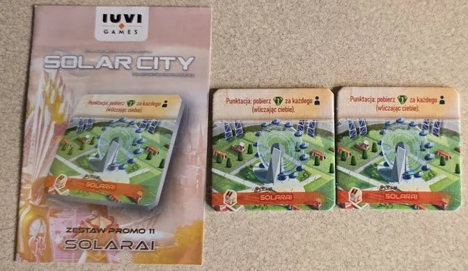 Solar City is a game where players design the future city. In each turn players choose one of the 3 actions: