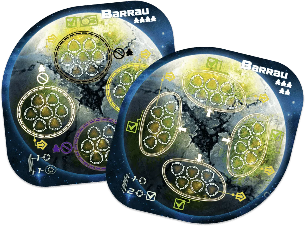 As soon as one of the three exoplanets is fully colonized, each Confederation gains influence according to its placement, then access to one of the two later discovered exoplanets becomes possible. At the end of the colonization of the five exoplanets, the stations are teleported to the Hawking planet and the influence of each Confederation is assessed. The leader of the most influential Confederation will be promoted to the rank of Governor of this new system.