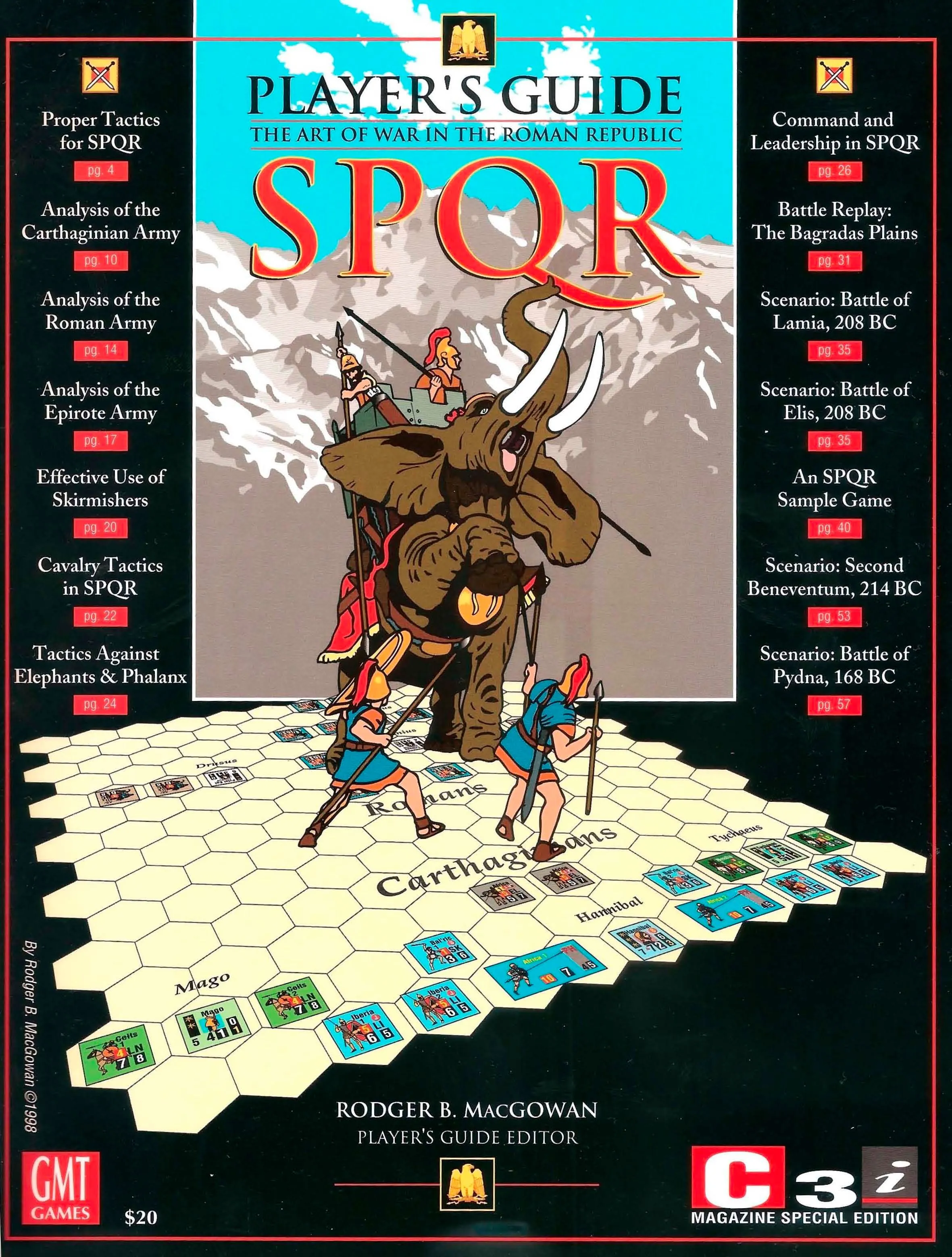 Heraclea - 280 BC (Pyrrhic Victory) Ausculum - 279 BC (Pyrrhic Victory) Beneventum - 275 BC (SPQR) Bagradas Plains - 255 BC (SPQR) Trebbia - 218 BC (Consul for Rome) Cannae - 216 BC (SPQR) Baecula - 208 BC (Africanus) The Metaurus - 207 BC (Consul for Rome) Ilipa - 206 BC (Africanus) The Great Plains - 204 BC (C3i No.4) Zama - 202 BC (SPQR) Cynoscephalae - 197 BC (SPQR) Magnesia - 190 BC (War Elephant) The Muthul River - 109 BC (Jugurtha)