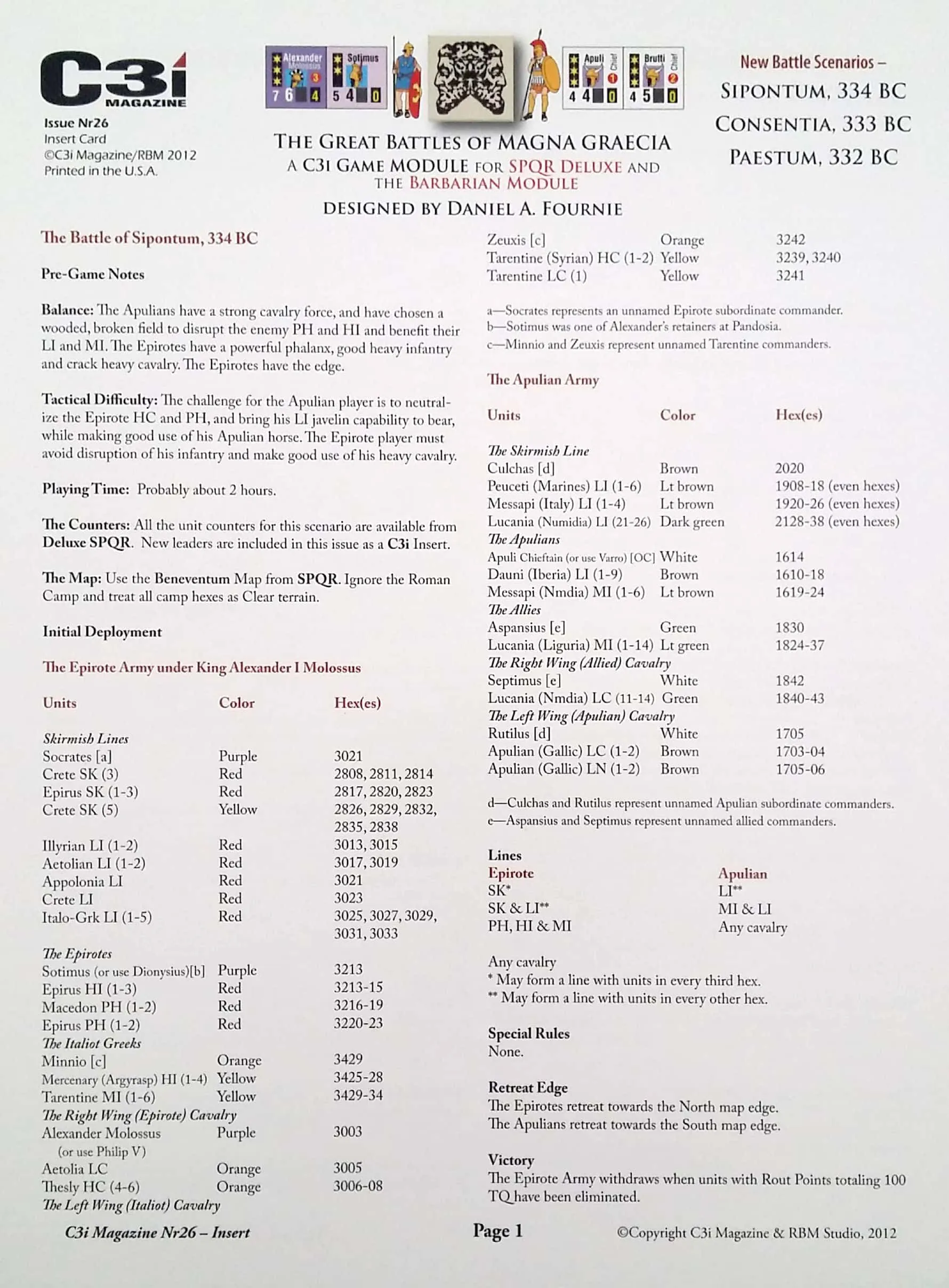 5 full-color countersheets 5 backprinted full color maps Rules Booklet Scenario Booklet Charts and Tables One 10-sided die
