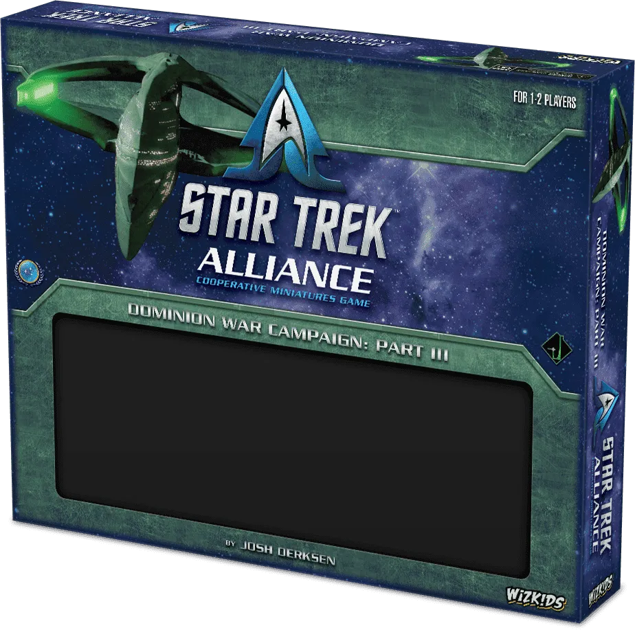 Star Trek : Alliance - Dominion War Campaign, est un jeu de combat spatial passionnant se déroulant dans l’ univers de Star Trek. Un ou plusieurs joueurs créent leurs propres capitaines de la Fédération, forment une force d’intervention et travaillent ensemble pour vaincre le Dominion au cours d’une série de missions de campagne. Cette boîte contient tout ce dont les joueurs ont besoin pour jouer la campagne complète, y compris des figurines de vaisseaux, des dés personnalisés, des cartes, des jetons et un livret de campagne de 6 missions. Au cours de chaque mission, les joueurs affrontent les vaisseaux ennemis contrôlés par le jeu, tout en remplissant des objectifs pour gagner des points d’expérience. Entre les missions, les joueurs dépensent leurs points d’expérience pour améliorer leurs vaisseaux et faire avancer la campagne, faisant de leur capitaine une légende de Starfleet !