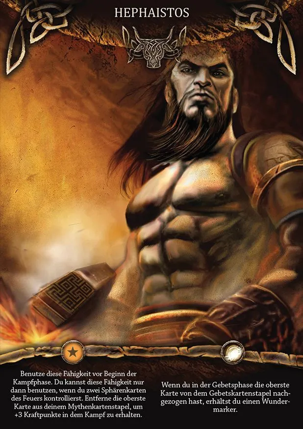 Theomachie, the second edition of Teomachia debuting in German in 2013, features new illustrations and expands the gameplay for up to four players, instead of the two-player limit of the first edition. The game was also reimplemented in two separate English editions: Theomachy: The Ancients and Theomachy: The Warrior Gods successfully crowdfuned in 2015 and released in coopeartion with Petersen Games.