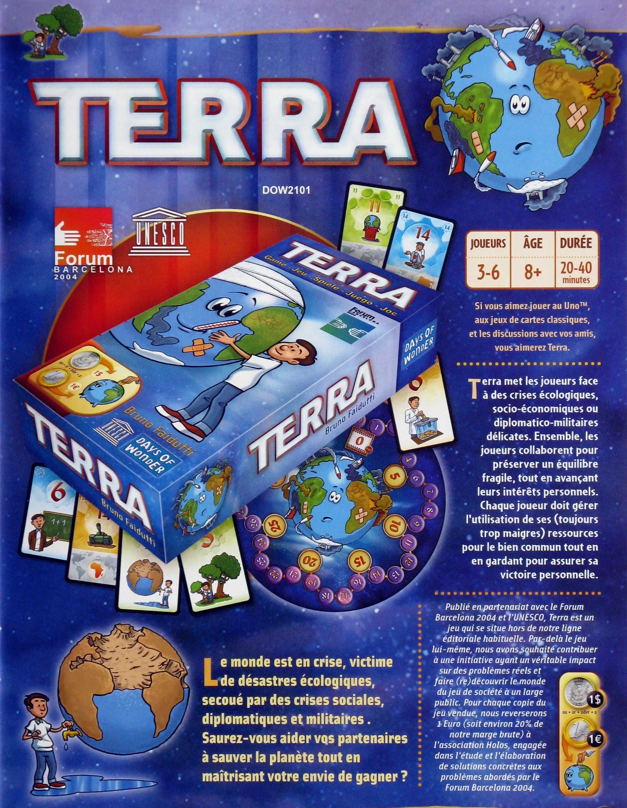 Terra is a redesign of Friedemannâs 2009 SDJ-nominated FAUNA, which had similar mechanics, but was specific to animals. Terra changes the subject matter to general geographic information, includes a brand new Imperial measurements map side (retaining the Metric map side for gamers outside the U.S.), has 300 topics (with three categories of questions) on oversized cards, and simplifies the scoring. Terra plays in 45 minutes for 2-6 players.