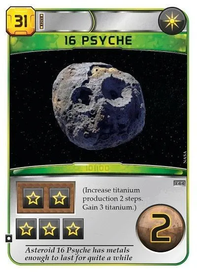 This is a green card costing 31M€ giving 2 titanium production and 3 titanium resources. It is worth 2VP at the end of the game.