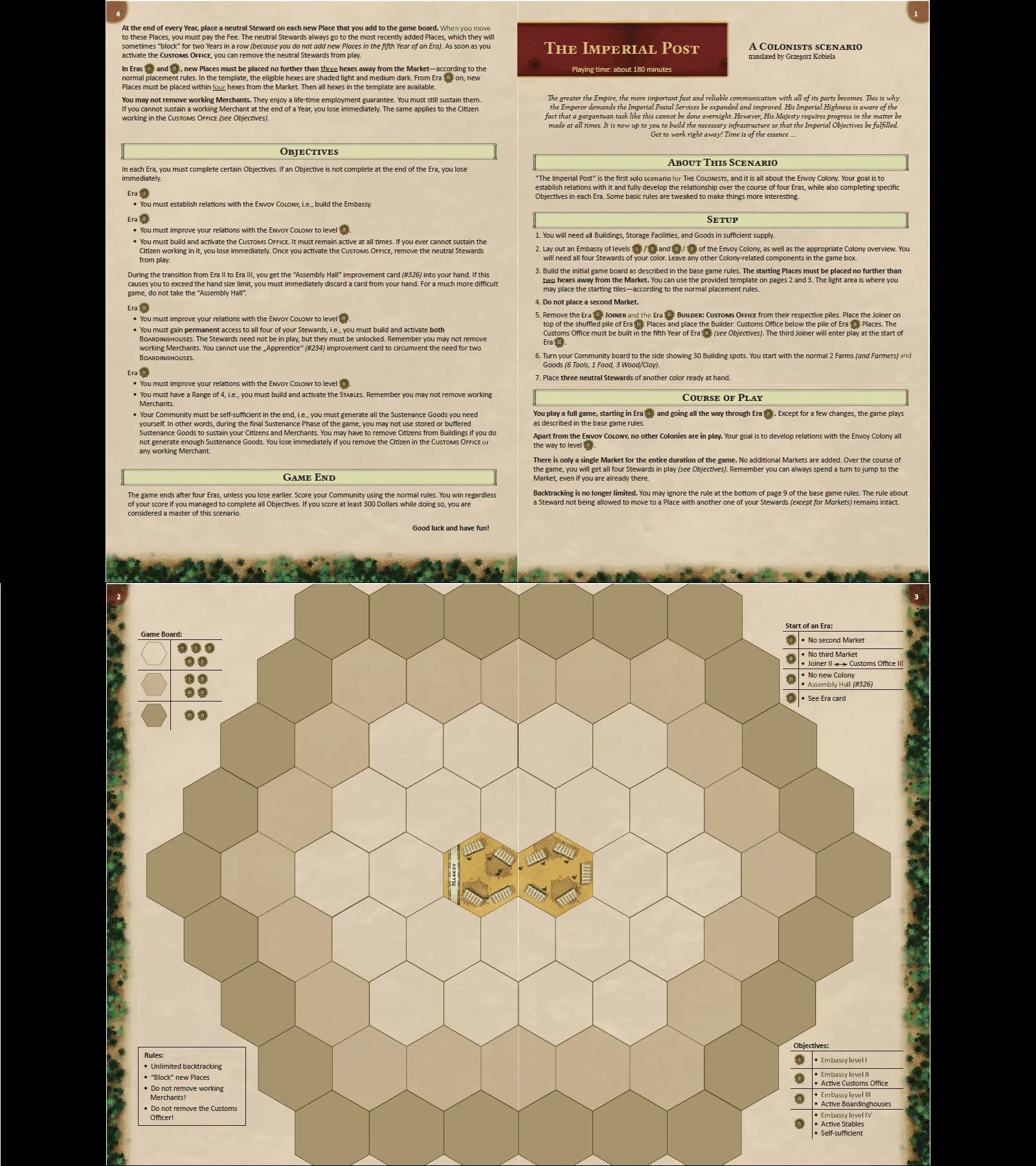 The Colonists is designed in different levels and scenarios, and even includes something akin to a tutorial, with the playing time varying between 30 minutes (for beginners) and 180 minutes (experts).