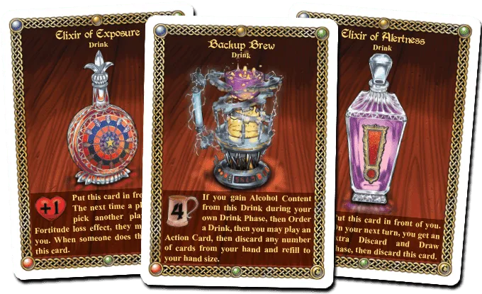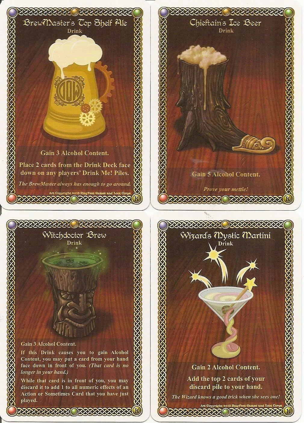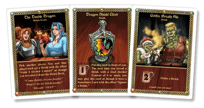 In Red Dragon Inn, you and your friends are a party of heroic, fantasy adventurers. Youβve raided the dungeon, killed the monsters, and taken their treasure. Now youβre back, and what better way to celebrate your most recent victory than to spend an evening at the Red Dragon Inn. You and your adventuring companions will spend the night drinking, gambling, and roughhousing. The last person who is both sober enough to remain conscious and shrewd enough to hold onto his Gold Coins wins the game.