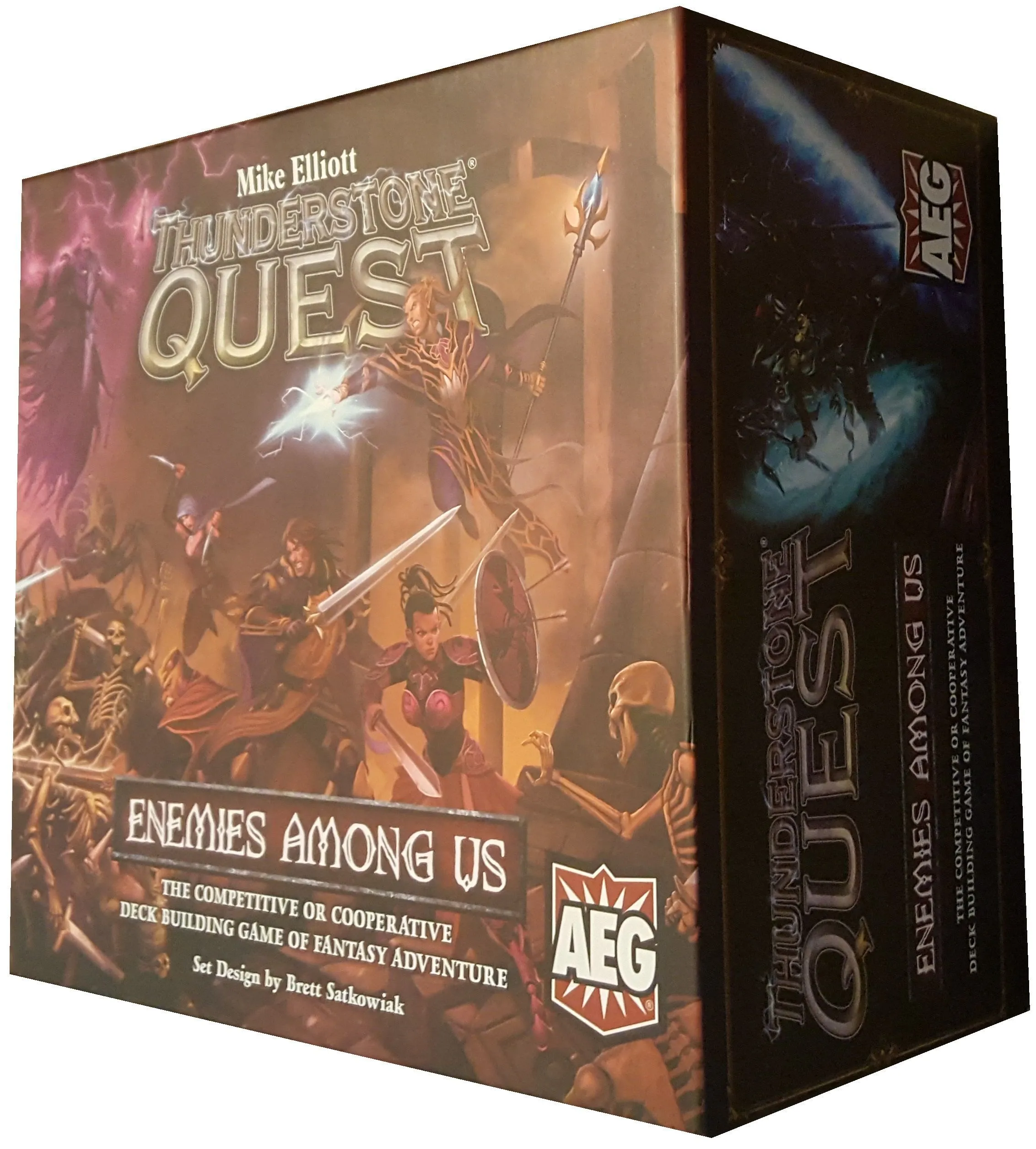 Thunderstone is a fantasy deck-building game. Each player starts with a basic deck of cards that they can use to purchase, or upgrade to, other, more powerful cards. Thunderstone Quest brings new play modes to the table. The game will tell a specific story with a series of pre-set dungeon tiles, monsters, heroes and support cards. Each will come with a series of mini-adventures and a story booklet that tells players what happens as they progress through the scenarios.