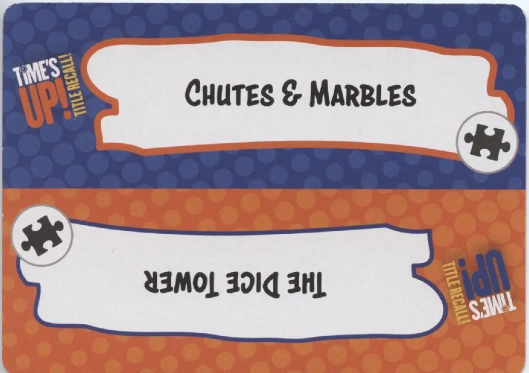Based on the popular game Time’s Up!, Time’s Up: Title Recall challenges players to guess the titles of books, films, songs, and more. Players try to get their teammates to guess the same set of titles over three rounds. In each round, one member of a team tries to get their teammates to guess as many titles as possible in 30 seconds. In round 1, almost any kind of clue is allowed. In round 2, no more than one word can be used in each clue (but unlimited sounds and gestures are permitted.) In round 3, no words are allowed at all.