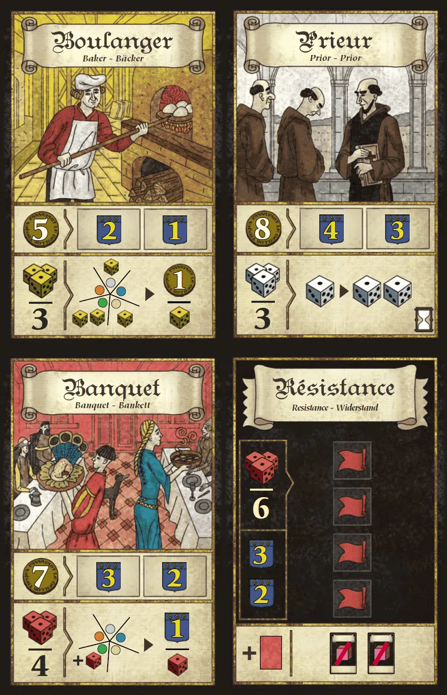 Many editions of Troyes released in 2016 or later include rules for a solo variant as well as four bonus cards originally released in 2011 as a promotional item. Versions released prior to this date contain rules only for games with 2-4 players.