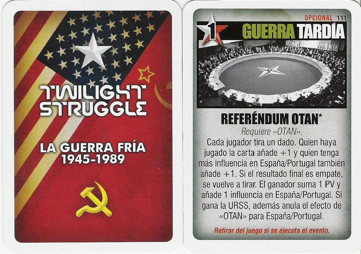 Twilight Struggle is a two-player game simulating the forty-five year dance of intrigue, prestige, and occasional flares of warfare between the Soviet Union and the United States. The entire world is the stage on which these two titans fight to make the world safe for their own ideologies and ways of life. The game begins amidst the ruins of Europe as the two new “superpowers” scramble over the wreckage of the Second World War, and ends in 1989, when only the United States remained standing.