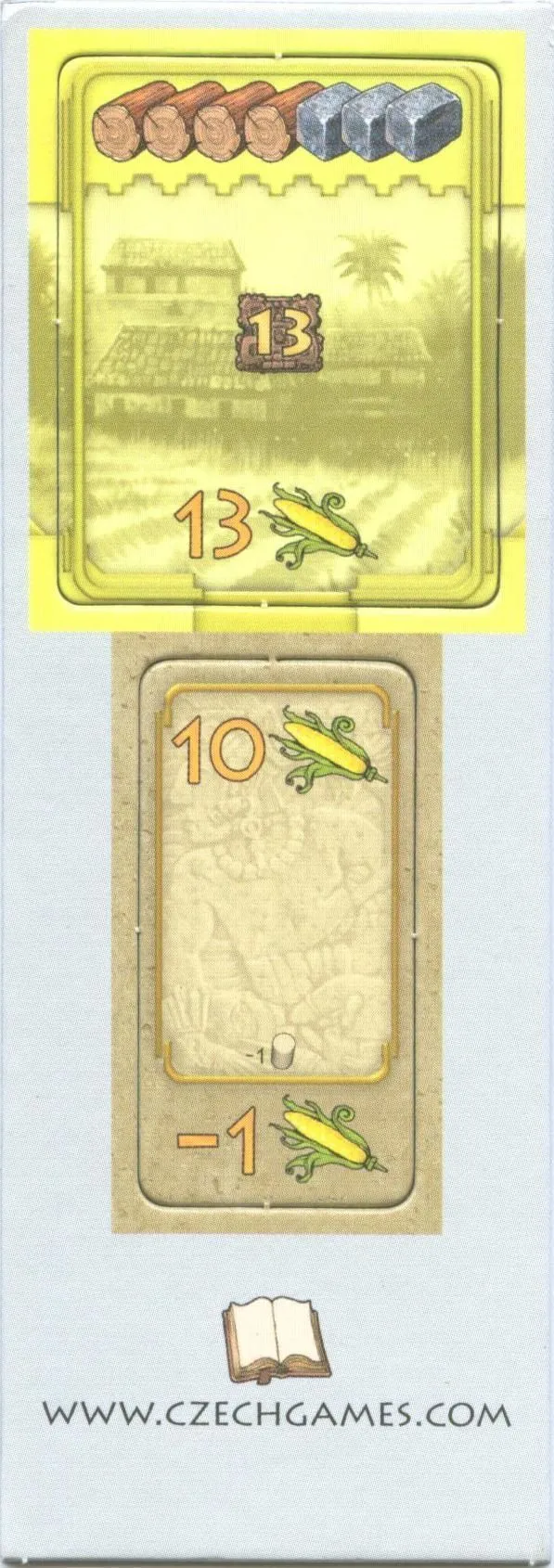 During a turn, players can either (a) place one or more workers on the lowest visible spot of the gears or (b) pick up one or more workers. When placing workers, they must pay corn, which is used as a currency in the game. When they pick up a worker, they perform certain actions depending on the position of the worker. Actions located “later” on the gears are more valuable, so it’s wise to let the time work for you – but players cannot skip their turn; if they have all their workers on the gears, they have to pick some up.