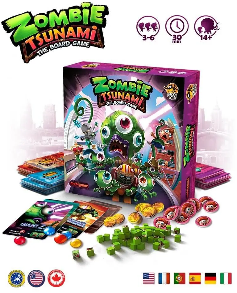 ​Zombie Tsunami is a party game for 3 to 6 players that plays in under 30 minutes.
