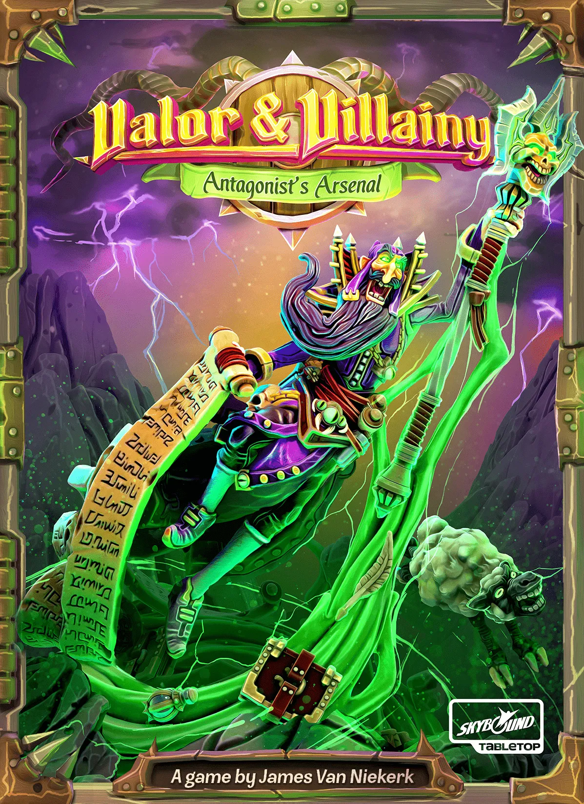 Valor & Villainy: Minions of Mordak is a one vs many roleplaying board game for 2-6 players. One of you plays as the comically evil wizard, Mordak, and the rest form a band of Allies called the “Order without Borders”, who must halt his path of destruction! The game focuses on a strong and playful theme, capturing the best parts of a classic roleplaying game and boiling it into a one time play session. Every player will appreciate satisfying character progression. Spending Experience Points their team has earned and locating powerful Treasures to make their characters mightier with every passing turn!