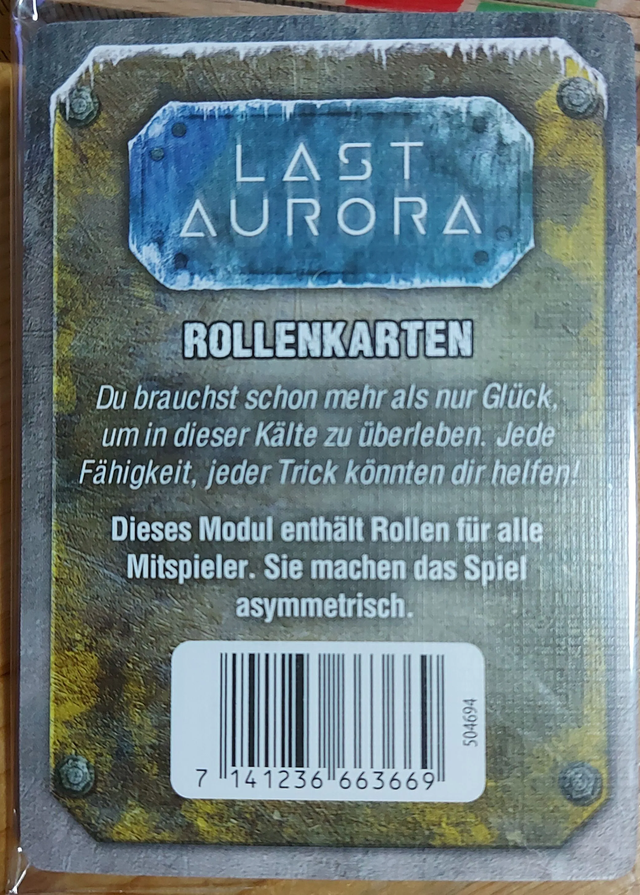 Last Aurora" est un jeu post-apocalyptique pour 1 à 4 joueurs qui se déroule dans une terre gelée et désolée. Chaque joueur doit gérer son équipage pour rassembler des ressources, recruter des survivants, améliorer son véhicule et combattre ses ennemis dans une course pour atteindre le navire avant qu’il ne soit trop tard !