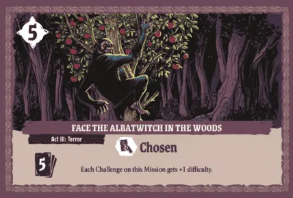 Minuit sonne dans les rues de Wildegrens et les villageois ferment leurs fenêtres pour échapper à l’obscurité. Le village isolé est en danger. Les récoltes sont mauvaises, les animaux meurent et les habitants disparaissent. Le peuple a peur. Derrière la vieille école, une ombre se dirige vers le puits de la ville. Une faible lumière révèle deux sorcières qui se font un signe de tête, éteignent la lanterne et se dirigent vers les bois sombres. Menez un groupe de sorcières dans leur lutte contre les maux menaçant Wildegrens. Au cours d’une série de tours, vous entreprendrez des missions de plus en plus difficiles. Si vous réussissez, vous obtiendrez le niveau de persuasion dont vous aurez besoin pour convaincre le village que la magie peut être une force du bien. Si vous échouez, vous risquez de perdre la partie. À la fin de chaque tour, vous devez choisir soit de tenter une autre mission, soit d’aller au procès, en espérant que votre persuasion sur les jurés sera suffisante.