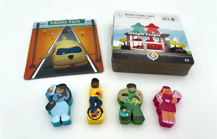 Streets is a tile-laying game where players build a city together. Each building has a simple valuation formula which earns money for the owner when the street is scored. Valuations are affected by the other buildings in the street, so smart placement is essential to maximise profit. On top of this, the city is populated by hipsters, families, shoppers and tourists, each with their own preferred building type. Cleverly located properties can benefit from the growing crowds of people who further increase the value of the buildings they visit.