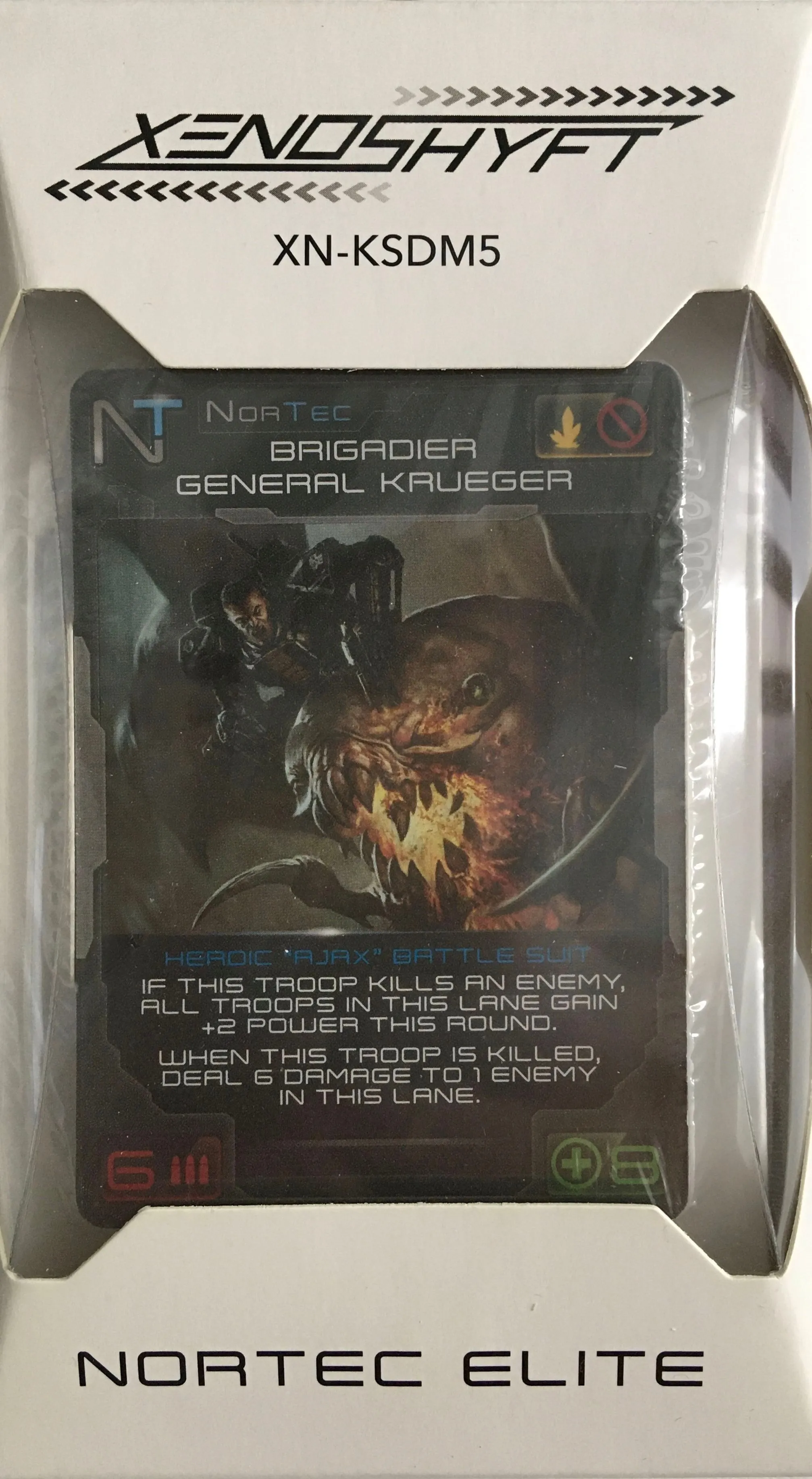 The XenoShyft game system combines classic deck-building and resource management with fast-paced combat and unique “base defense” elements. As the game progresses, each player builds up their deck of troop and item cards, which they will in turn use to defend the base against incoming enemies in deadly combat.