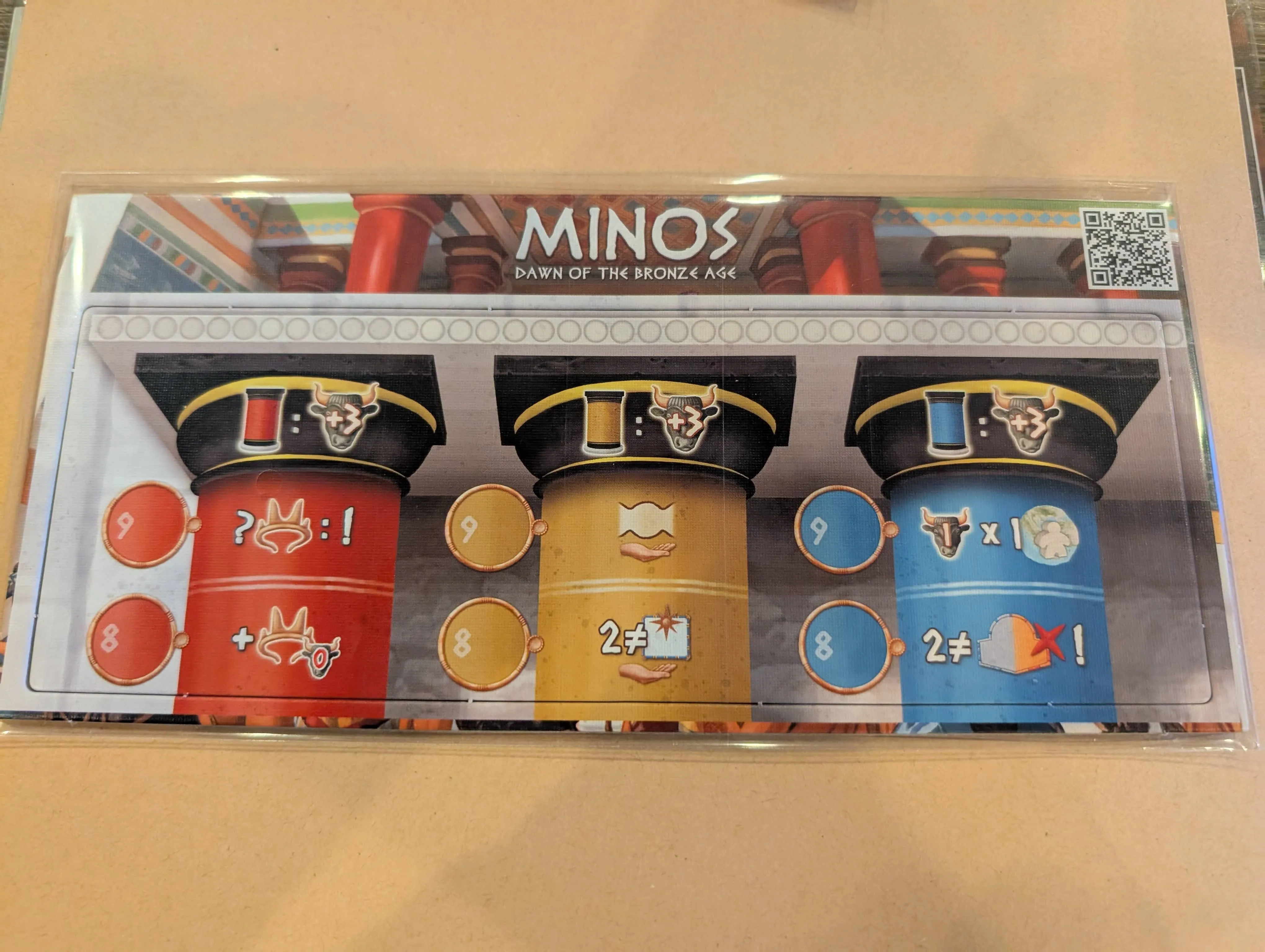 En tant que chefs de clans minoens, les joueurs sont à la tête de la première civilisation européenne. Dans Minos: Dawn of the Bronze Age, construisez des villes, des monuments et d’autres structures, ouvrez de nouvelles routes commerciales, développez votre territoire et combattez les envahisseurs, planifiez vos actions avec votre conseil de clan, faites des recherches et émettez des décrets pour que vos actions soient plus puissantes que celles de vos adversaires! Vous n’avez que 4 tours pour prouver que vous êtes digne du titre légendaire de Minos.
