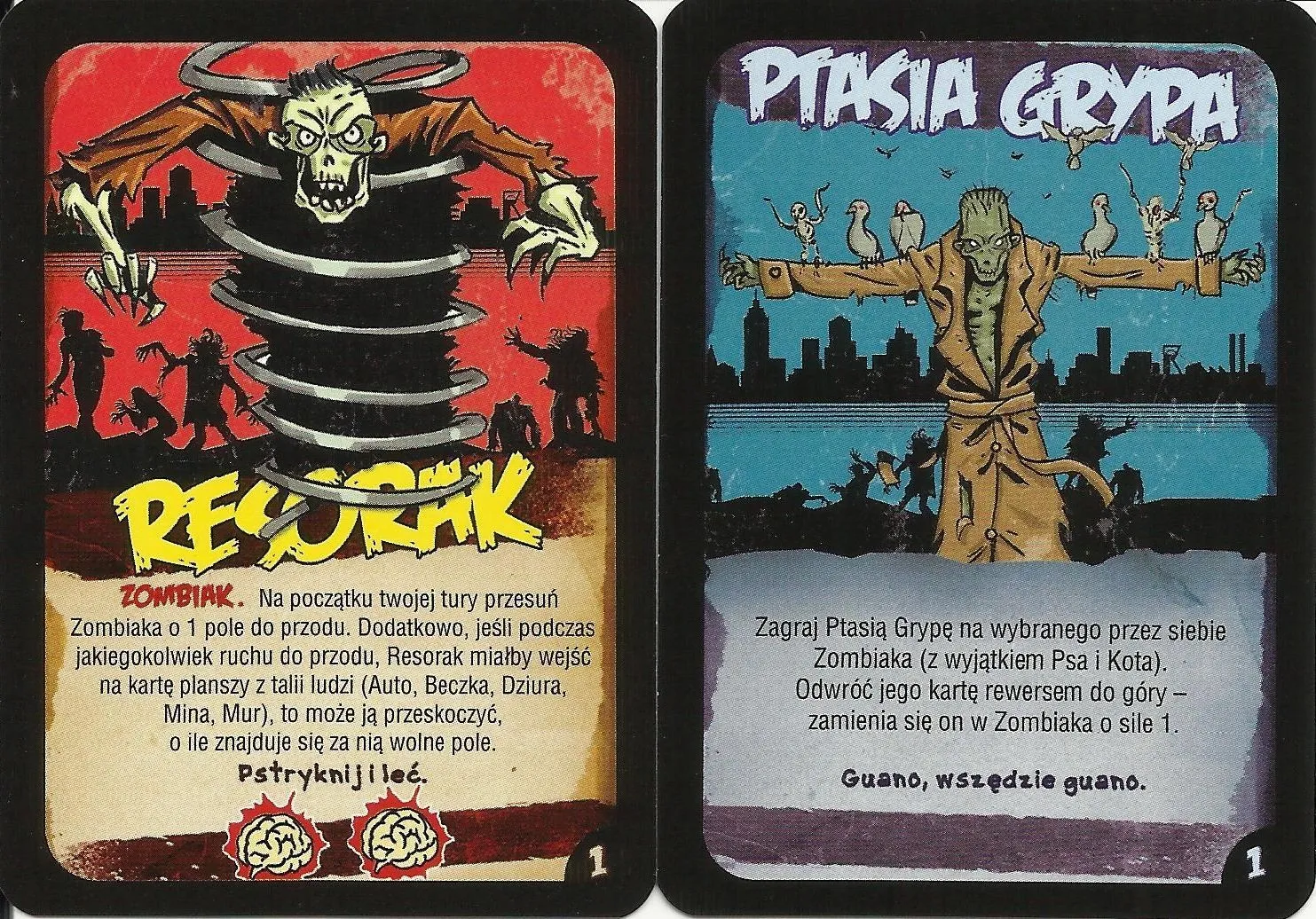 Polish card game for two players. One of the players is the Zombies, the second one - humans. Objective of the Zombies is to eat the people, but people want to save their own lives, which is possible if they survive until the sunrise. Game with humor and strategy.