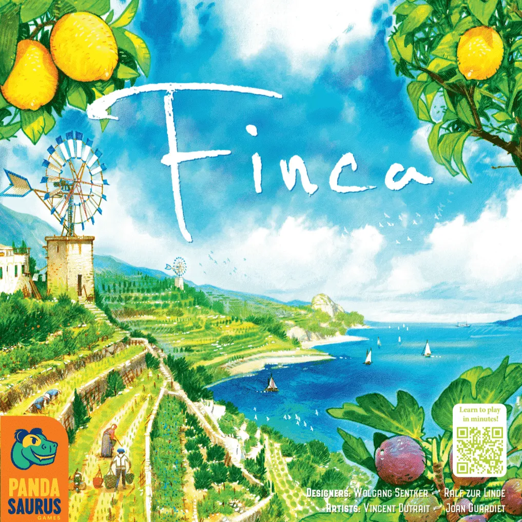 Bienvenu à Majorque qui n’est pas qu’un repaire à touristes mais aussi un producteur de fruits. Finca s’appuie sur ce thème (hmmm… un peu plaqué mais pas plus que la majorité des jeux du genre) pour un petit jeu de gestion fort bien ficelé. Le jeu n’est pas une nouveauté, il a été édité par Hans im Glück en 2009. Et devrait donc revenir fêter ses 10 ans après un passage par Kickstarter dans une version améliorée graphiquement et enrichi d’une extension qui n’était jusque là que difficilement disponible (publiée dans le magazine Spielbox). On est dans un pur jeu d’optimisation à l’allemande, où vous devrez jongler entre récolte, transport et vente. Un peu onéreux, quand même.