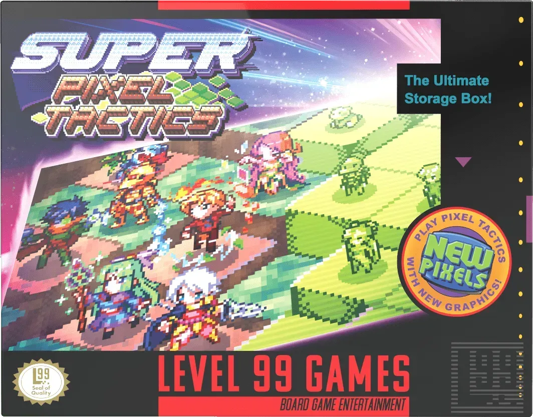 Super Pixel Tactics se termine le 30 mai. Lien GF. Je mâen serais voulu de ne pas vous parler de la nouvelle campagne de lâĂ©diteur rĂ©putĂ© Level 99. On peut au minimum admettre que leurs propositions manquent rarement dâoriginalitĂ©, ce qui est encore le cas pour moi de ce jeu dâaffrontement. Dans Super Pixel Tactics, vous commencez en choisissant votre leader parmi une main de cinq hĂ©ros, ce qui va globalement dĂ©finir votre stratĂ©gie puisque vous devrez le placer au centre de votre tableau. Ensuite, vous dĂ©butez la partie et Ă votre tour vous pouvez effectuer deux actions parmi une flopĂ©e telles que piocher une carte, recruter un hĂ©ros, activer votre leader ou lancer un sort. Un dilemme pourra se poser sur chaque hĂ©ros puisque vous pourrez les recruter en les plaçant Ă diffĂ©rentes positions par rapport au leader (et donc en activant des effets diffĂ©rents) ou bien les dĂ©fausser pour activer un ordre et donc encore un autre effet. Sachant que chaque hĂ©ros pourra ĂȘtre jouĂ© comme leader avec ses pouvoirs spĂ©cifiques et que chaque hĂ©ros possĂšde quatre effets diffĂ©rents, je vous laisse imaginer le nombre de possibilitĂ©s tactiques de ce jeu. Si vous ĂȘtes amateur de ce style de jeu, je vous invite Ă y jeter un coup dâĆil. Cette Ă©dition du jeu vous propose la totale en une boĂźte Ă 100$ et 150$ si vous souhaitez ajouter jetons acryliques et playmat.