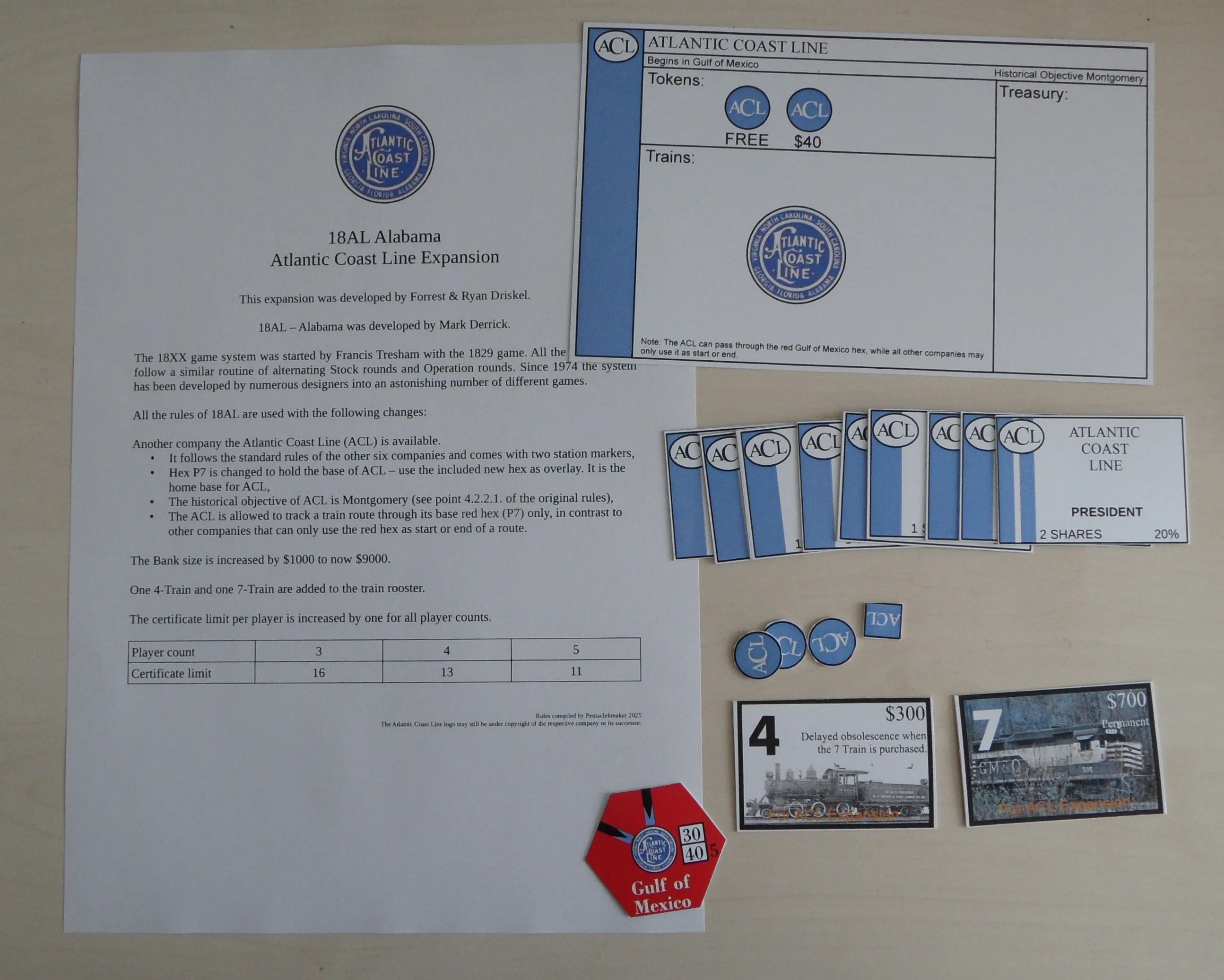 18AL is a shorter 18xx game set in Alabama and designed by Mark Derrick. It is currently available as a free print-and-play game from John David Galt.
