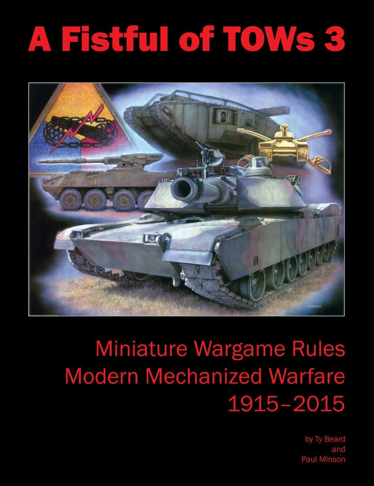 A Fistful of TOWs 3 is a fast-playing battalion- to brigade/regiment-level game using miniatures. Game covers mid-1930s to 2015, and army lists from WW2 and post-war eras. Each stand represents a platoon. Can be played with miniatures from 2mm up to 15mm with no modifications; for larger miniatures authors suggest possibly changing ground scale. Design ground scale is 1"=100m, can be played using 1cm=100m without altering any numbers. Nominal turn length is 12 minutes, but for infantry heavy games 20 or 30 minutes per turn is probably more accurate.