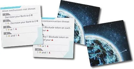 Il y a deux faces à chacune de ces cartes, et vous pourrez les jouer de deux manières : Logistique - gagner des bonus permanents qui rendront votre Empire plus fort et vous aideront à construire plus rapidement ou opérationnel - marquer des points de victoire. Gérez vos ressources, construisez les bonnes cartes, faites des choix judicieux. Gagnez! Alien Artifacts offre une véritable expérience 4X en moins d’une heure. Avec plus de deux cents cartes, vous aurez de nombreuses stratégies possibles et de bonne capacité de renouvellement.